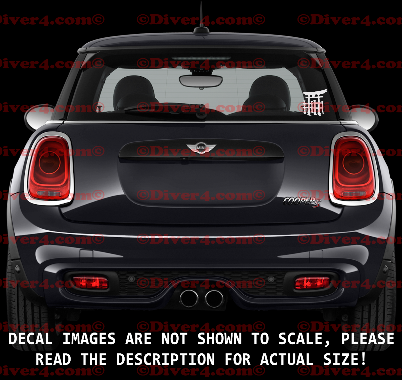 Picture is for reference to show how the sticker will look on a vehicle rear window and may not be to scale.