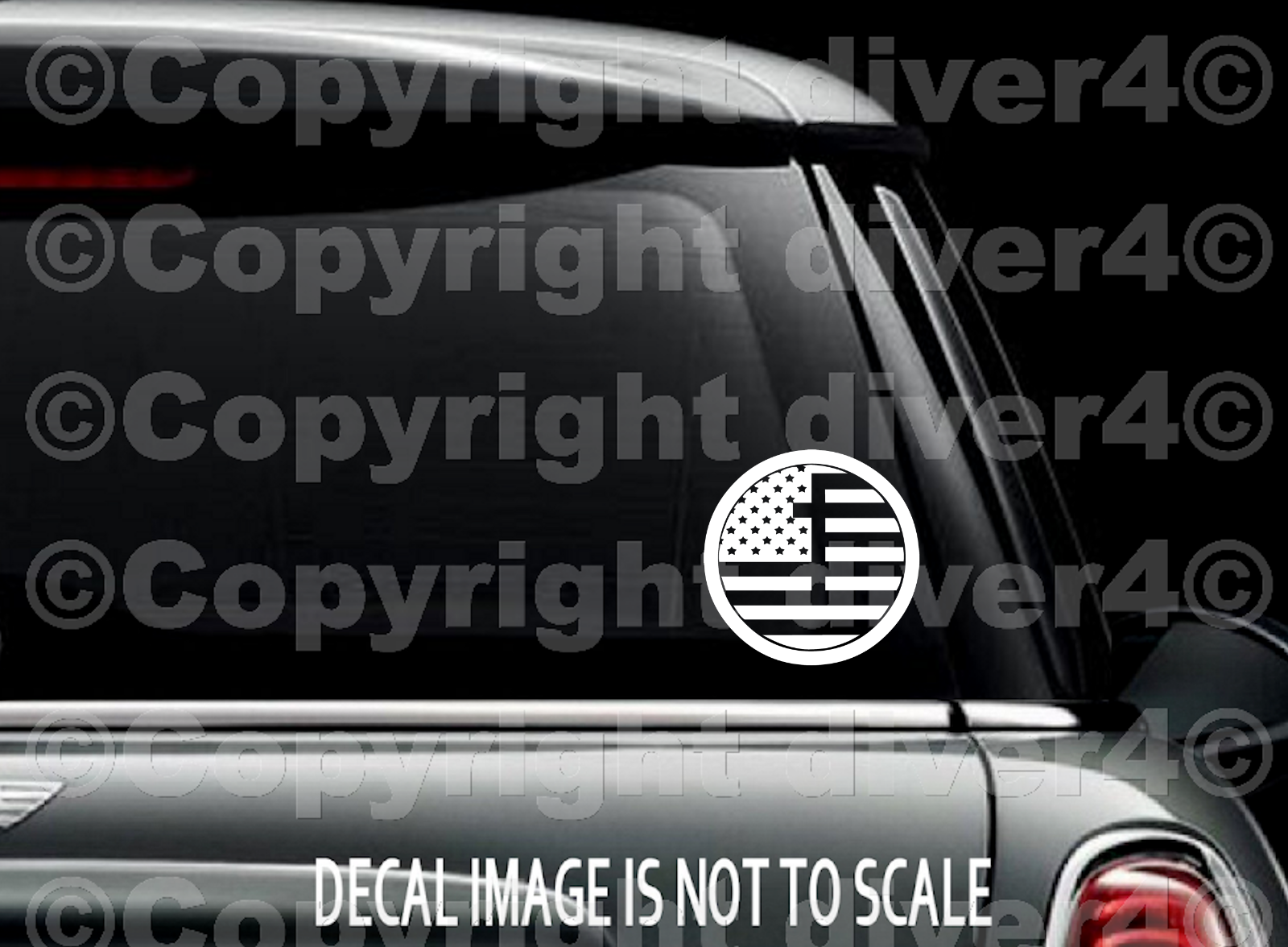 This is a custom Round US Flag with Cross vinyl car/truck window decal.