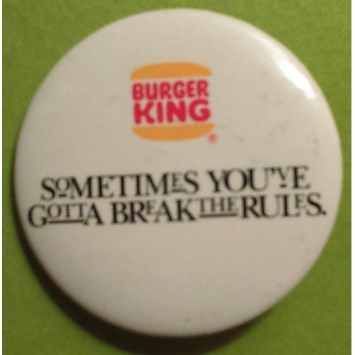 Pinback by Burger King "Sometimes You've Gotta Break The Rules". (bx1)