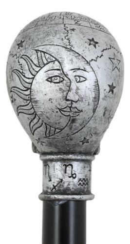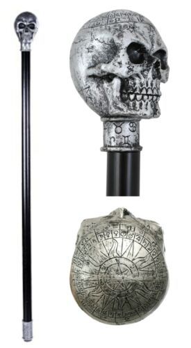 This Astrology Skull Decorative Walking Cane measures approximately 37" Tall and the skull cane handle is 2.25" wide and 2.25" deep. The cane weighs about 1 pound.