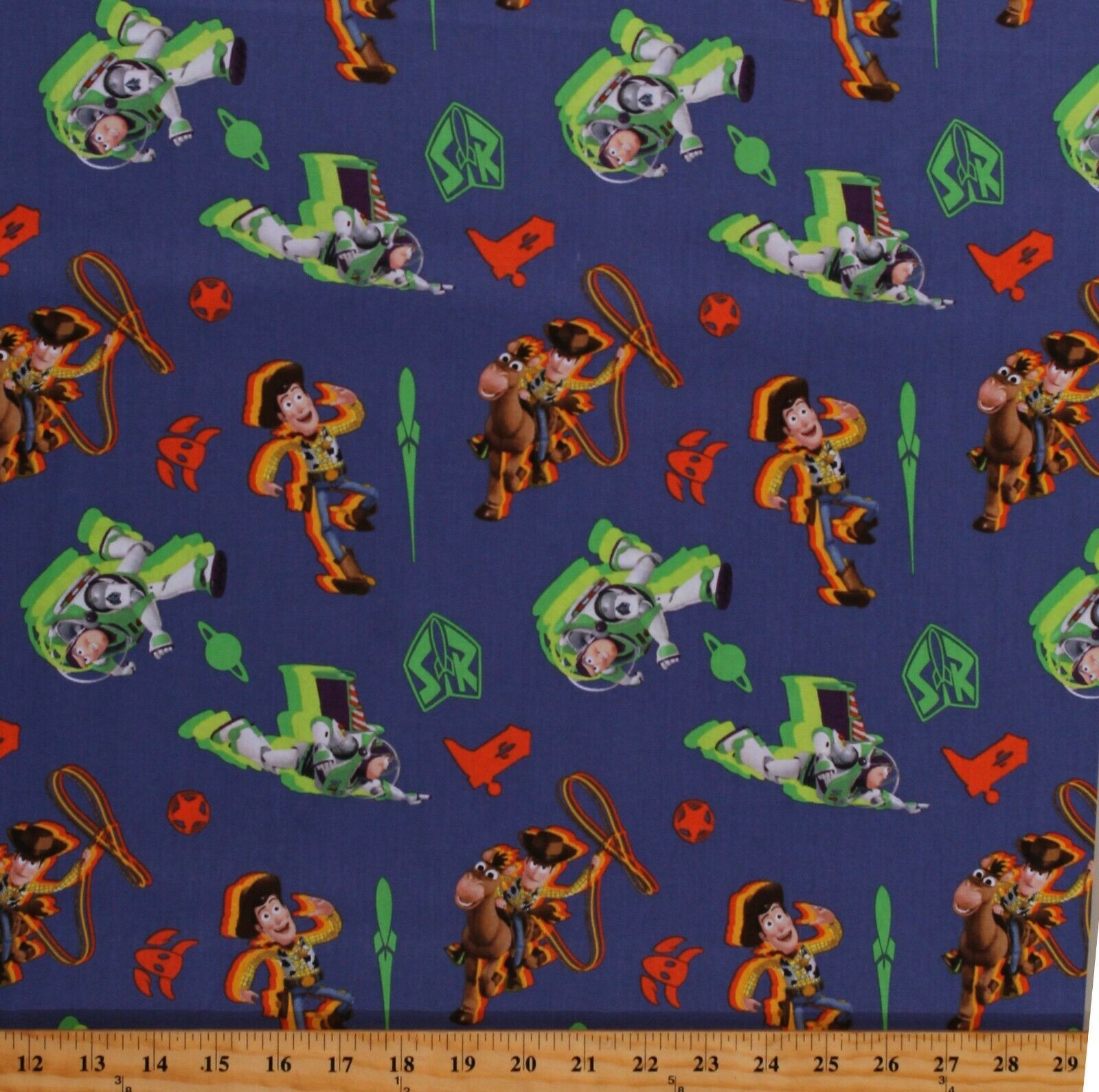 Cotton Disney Kids Toy Story Lightyear Woody Blue Fabric Print by Yard D787.94