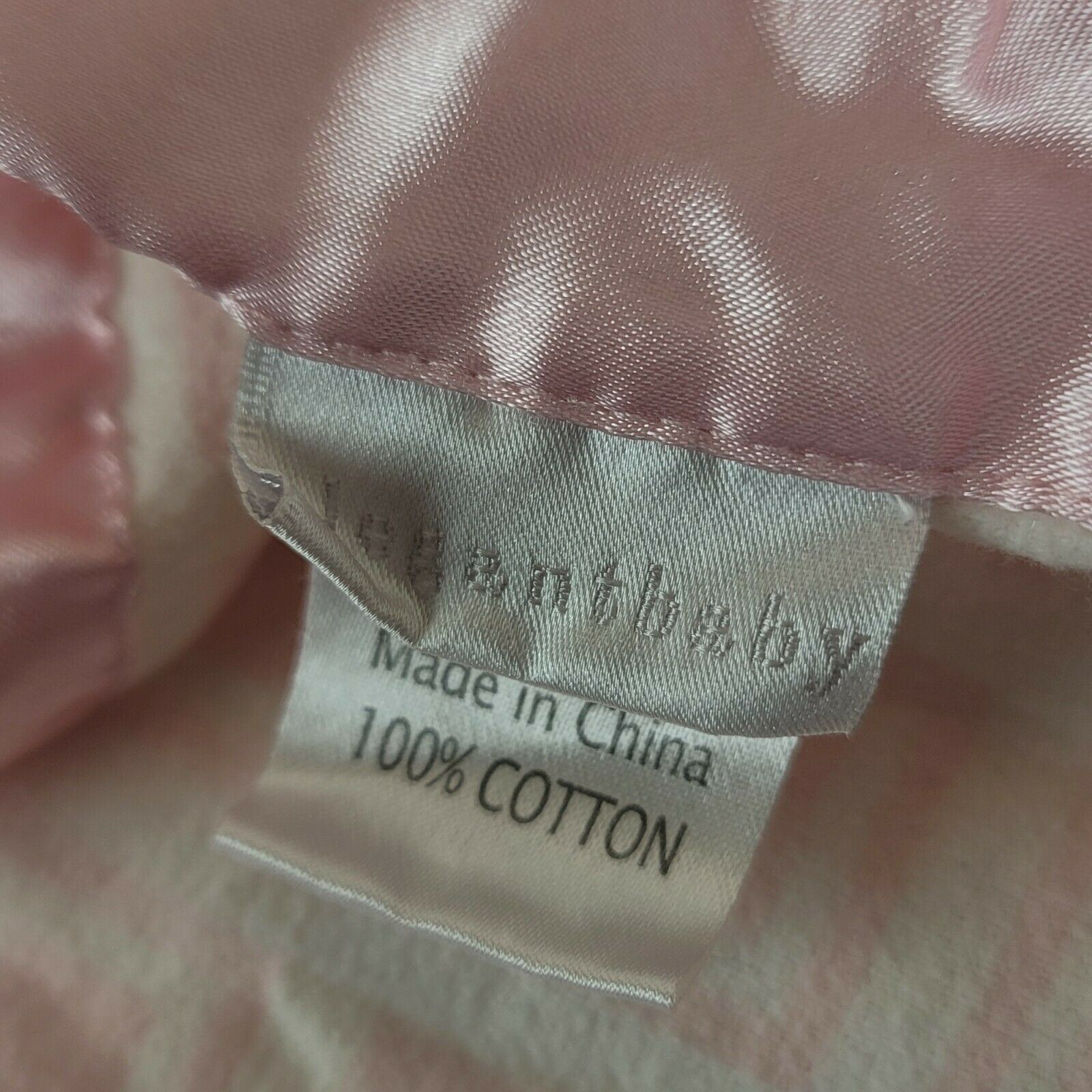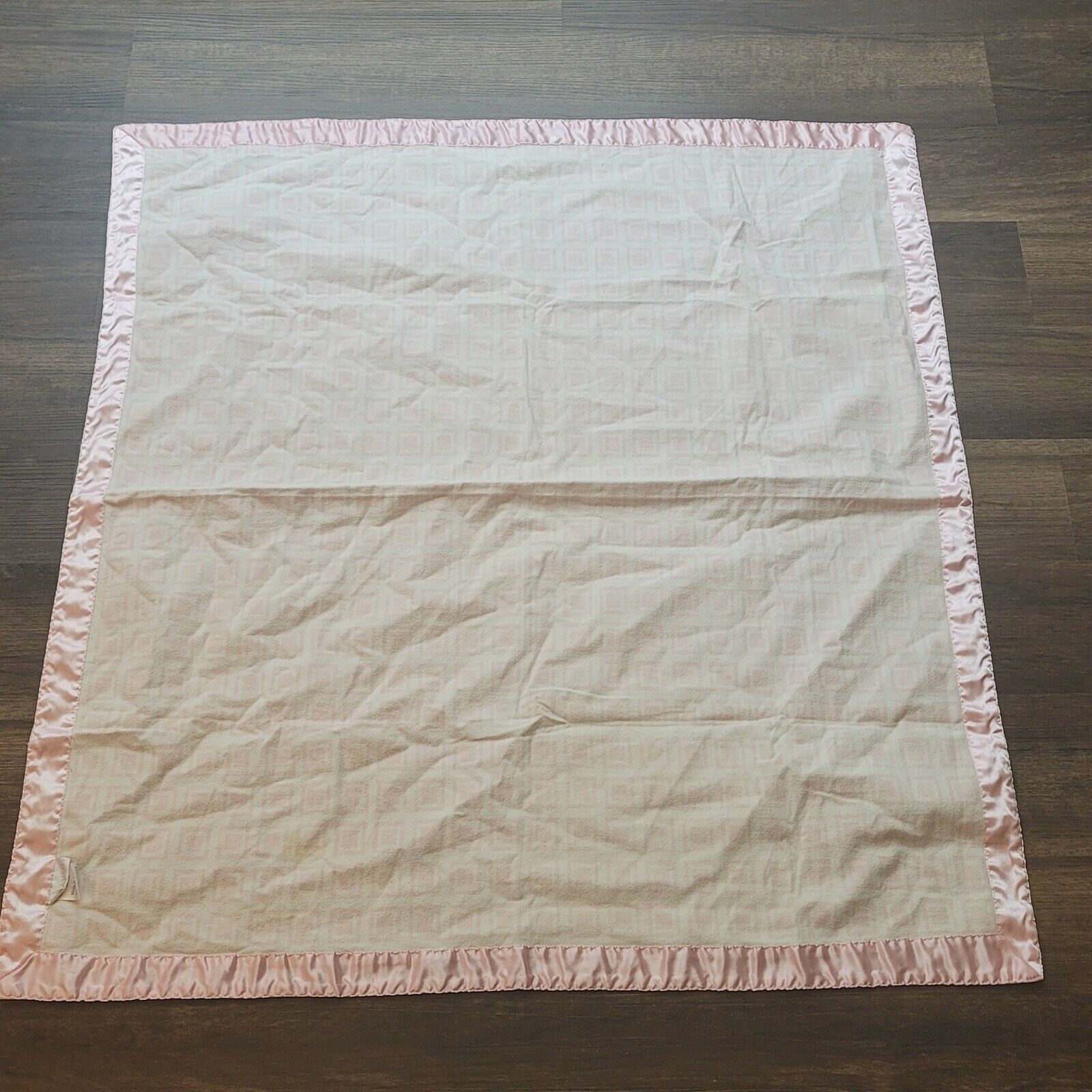 Elegant Baby Pink White Square Cotton Flannel Girl Blanket Satin Trim Edge 33x34