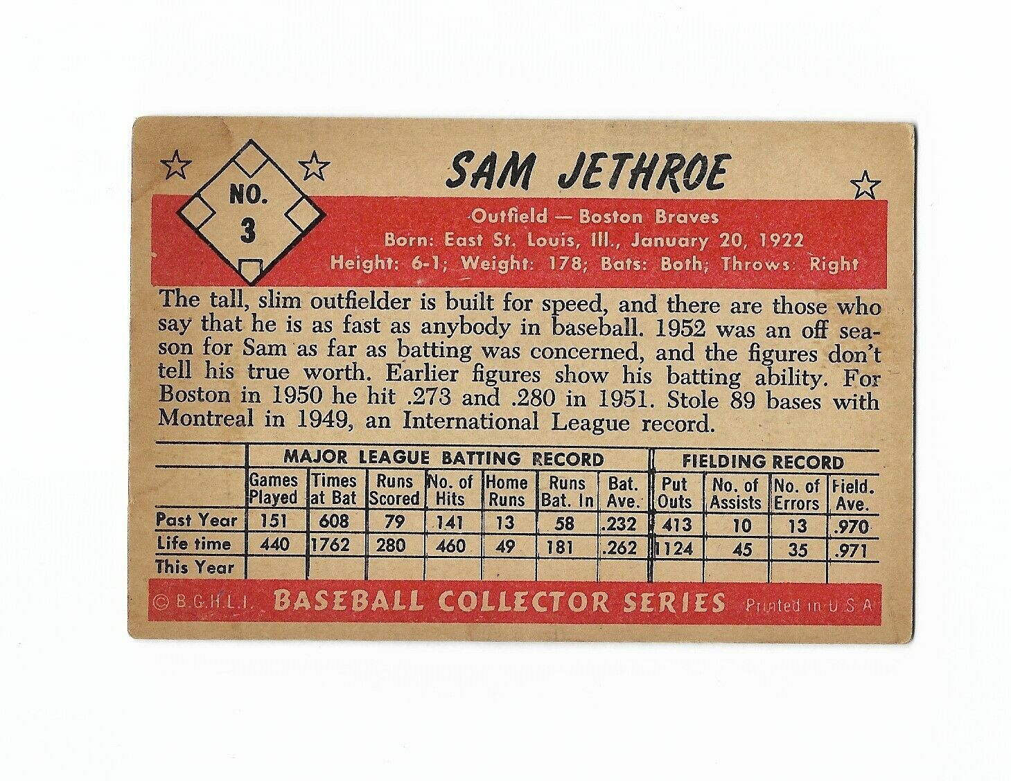 1953 Bowman Color Sam Jethroe #3 Boston Braves Ungraded Vtg Baseball Card