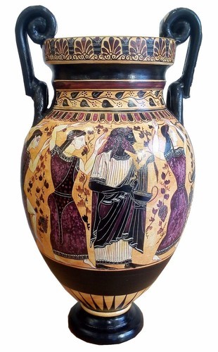 Ancient Greek Neck Amphora with Olive Harvest Museum Replica Reproduction