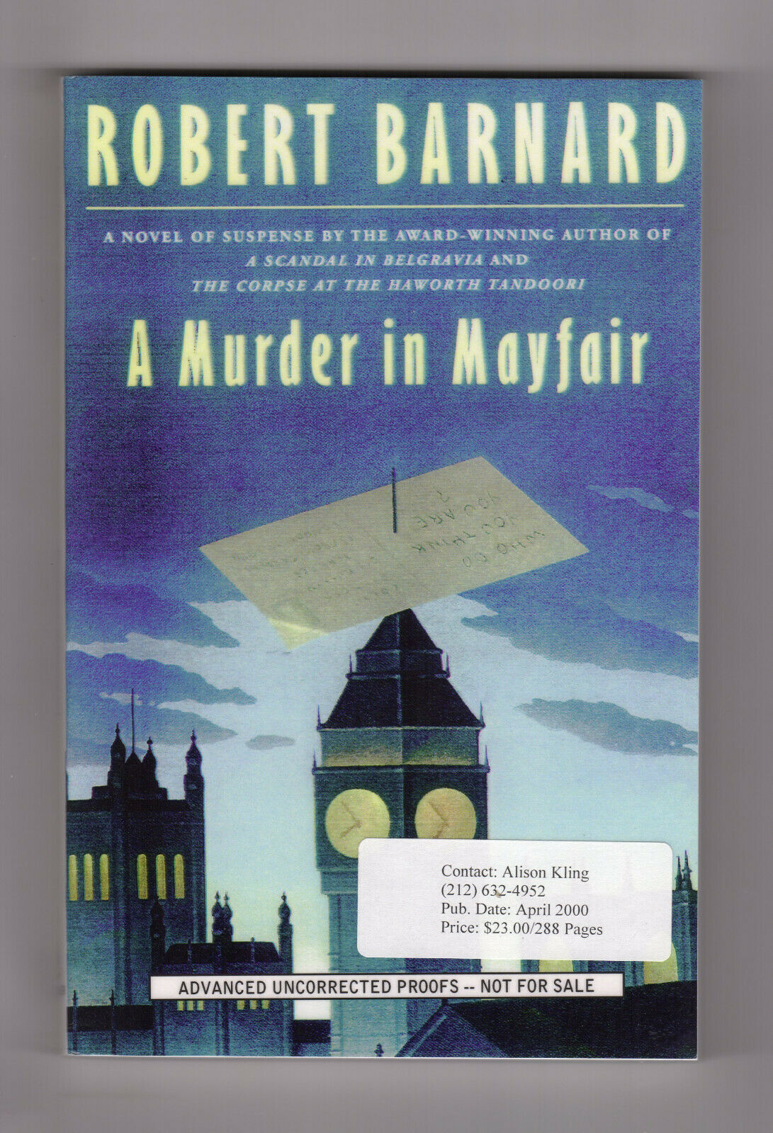 Robert Barnard A MURDER IN MAYFAIR First edition Mystery Advance Proof Politics