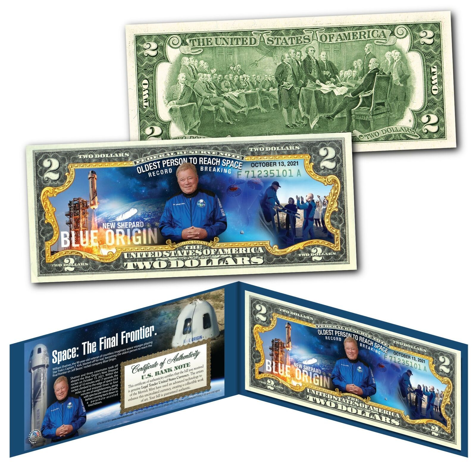 Blue Origin Space Rocket - Oldest Man to Reach Space William Shatner $2 Bill