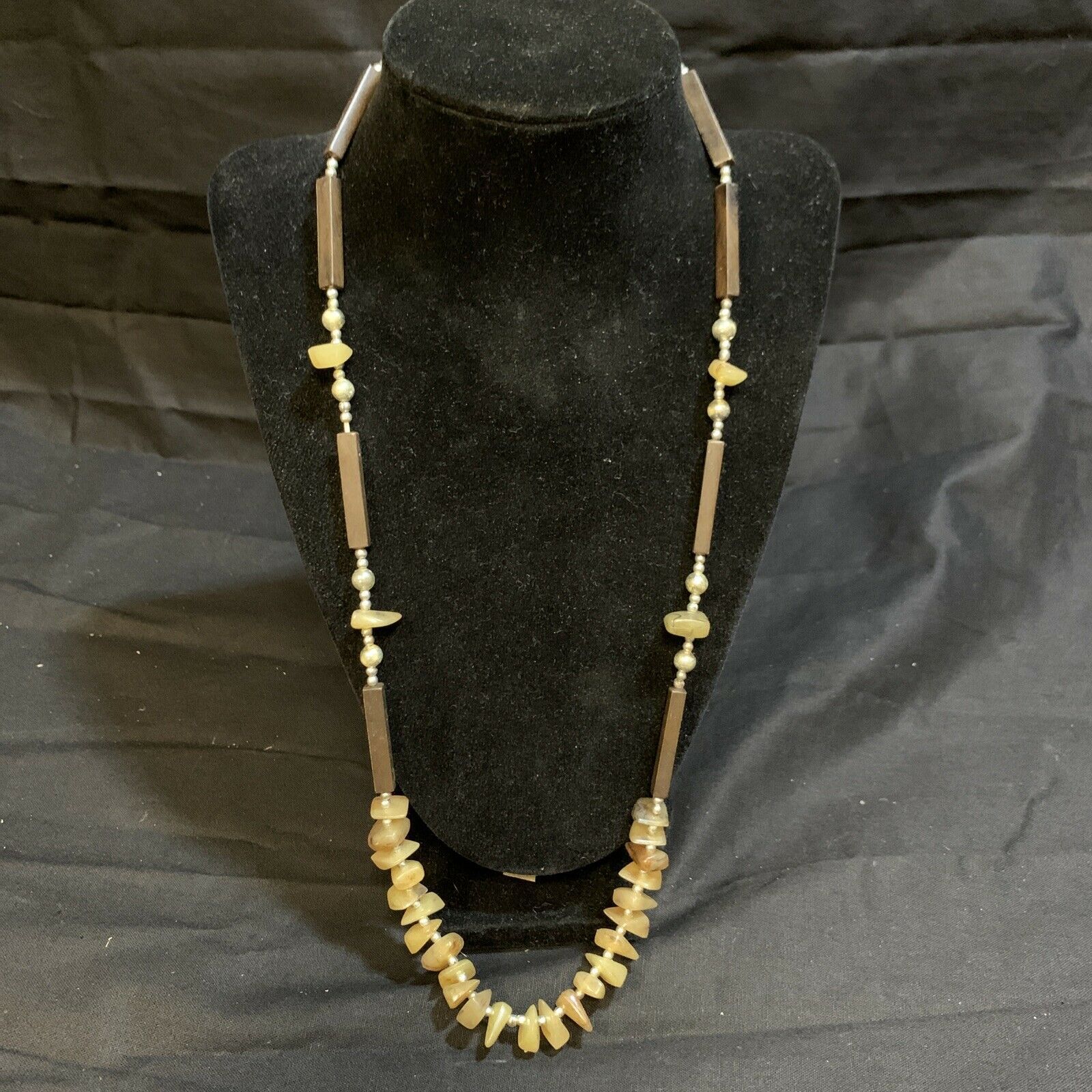 Handmade Beaded Necklace Tan Beige Brown Fashion Jewelry KG