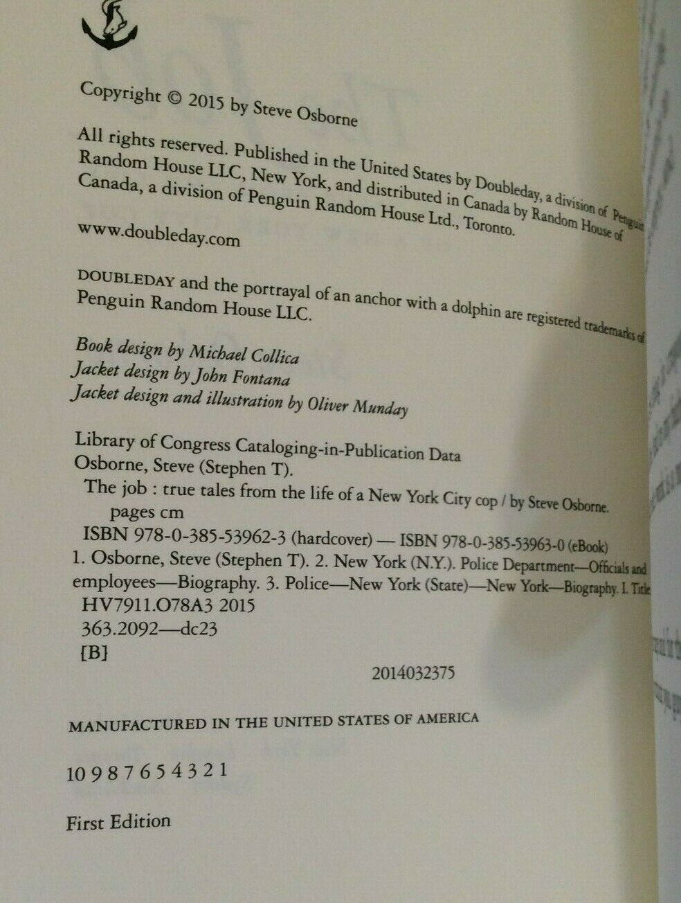 THE JOB by STEVE OSBORNE - FIRST EDITION - HARDCOVER - TRUE TALES OF A NY COP