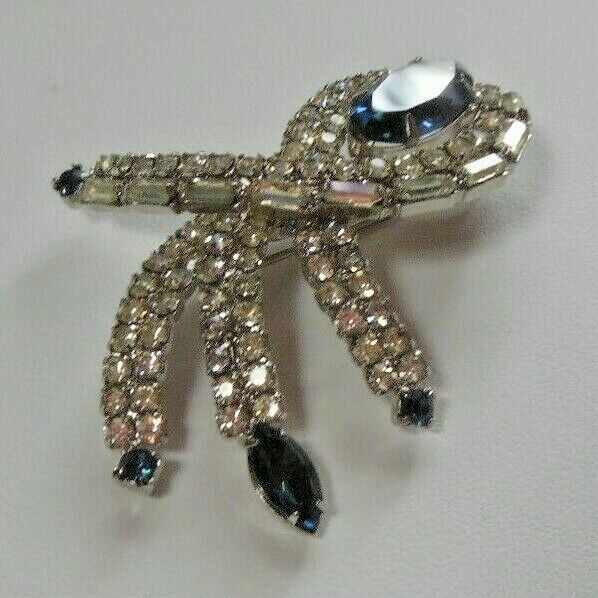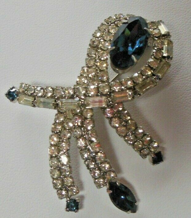 Vintage Prong-set Sapphire Blue Clear Rhinestone BROOCH