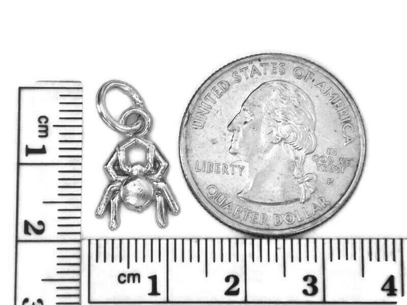 Welcome to Twins Jewelry Thank you for your interest in our item Spider #1 Sterling Silver .925 Small Charm pendant, our product has a high polish finish. The weight for the item is approximately 1.2 g, measurements are 20mm x 11mm. Our product is 100% made here in the USA with over 35 years in experience in the jewelry business. Our customers are our top priority with our 100% satisfaction guarantee or your money back policy. Thank you for your interest in our item, please judge by the picture and if you have any questions feel free to ask. Item#1109 (B) Lot#26 Box#0