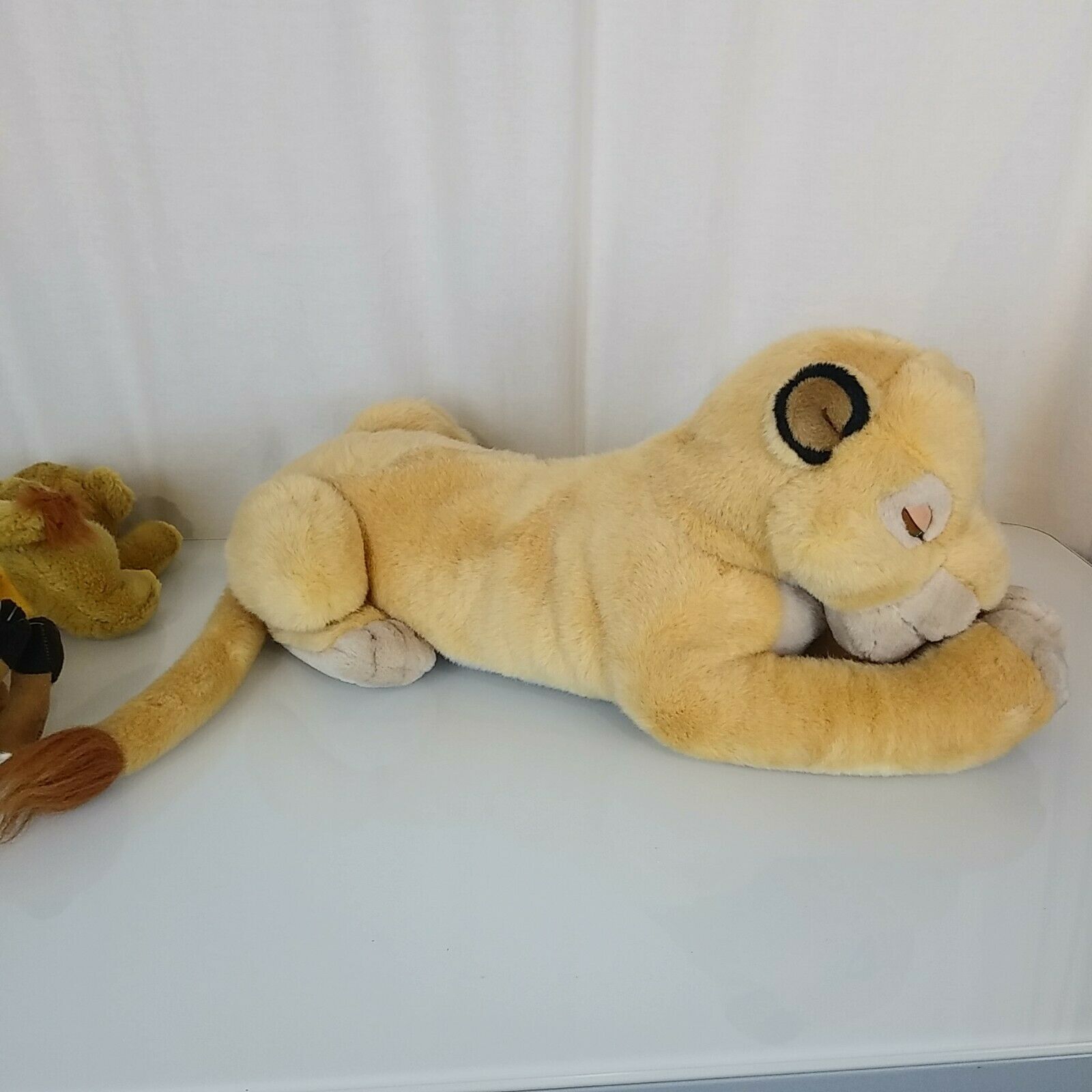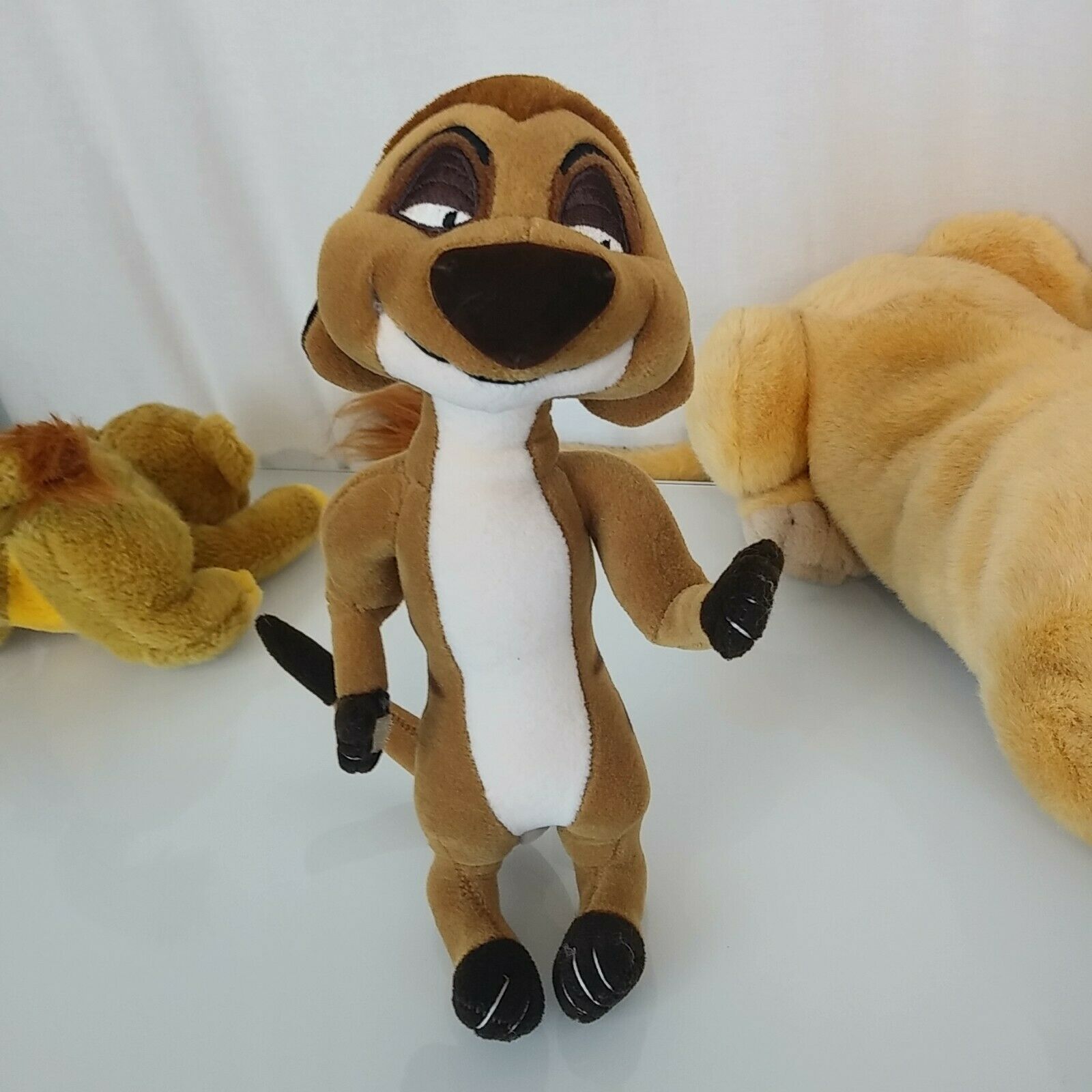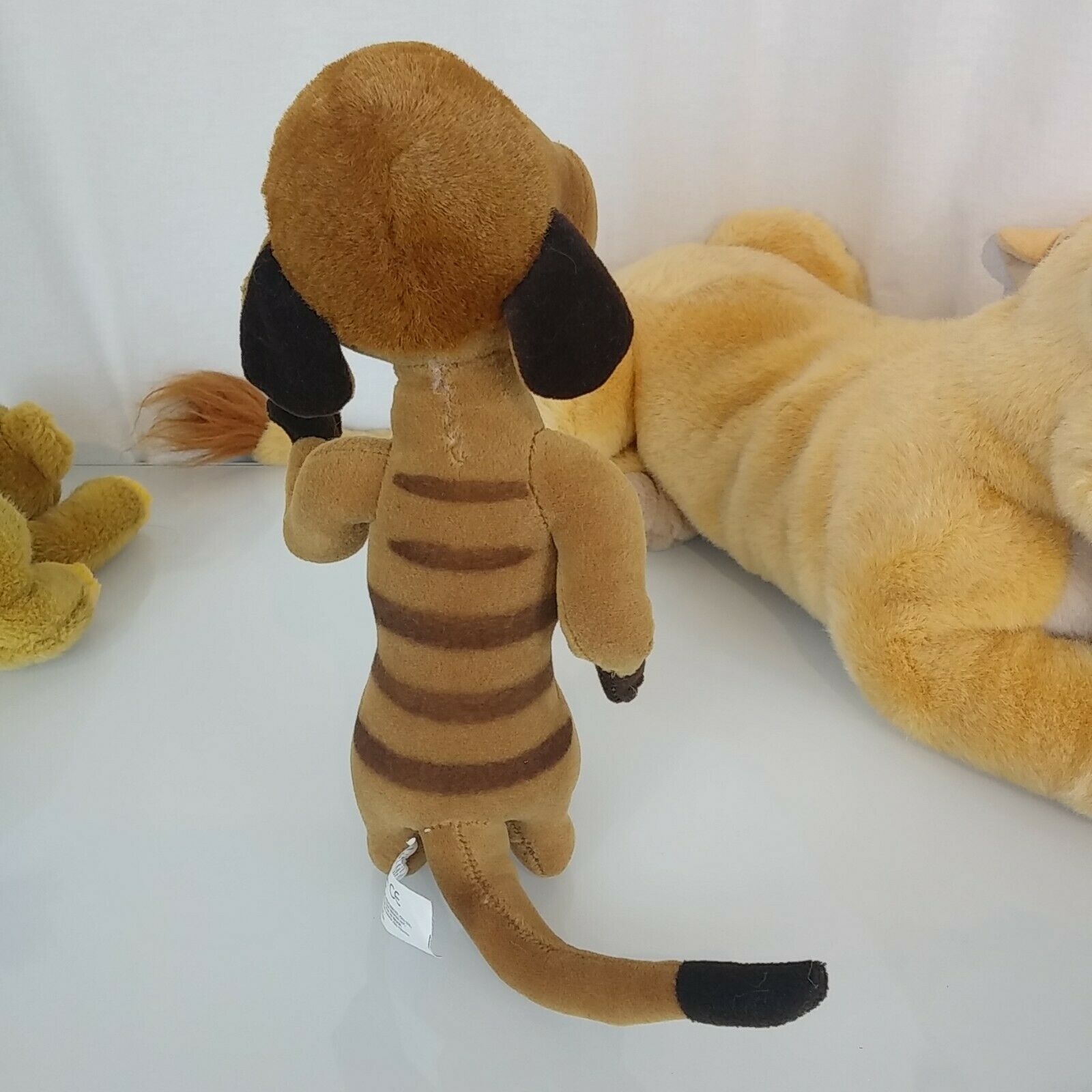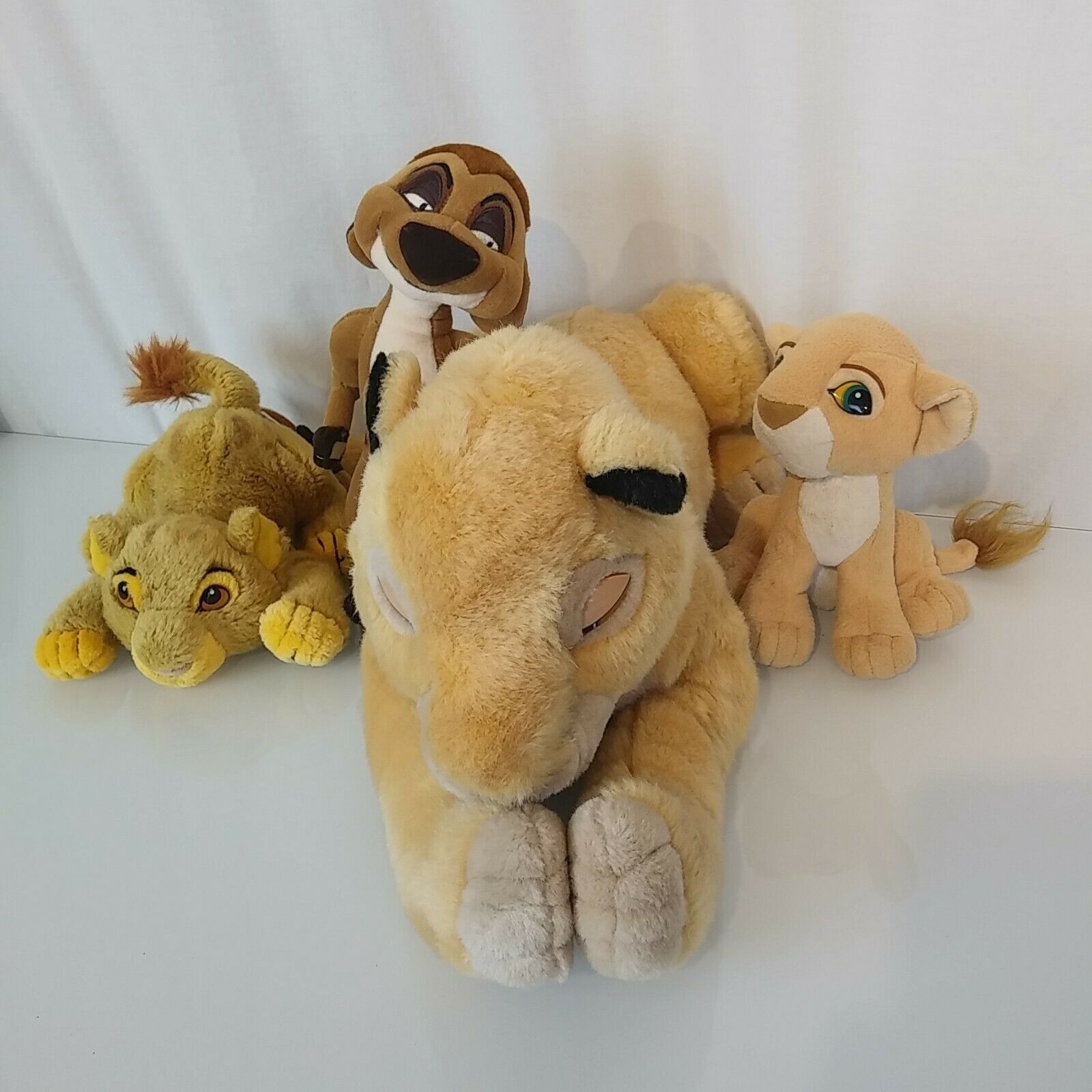 Used. These are not a "matched" set, as they have different manufacturers (Disney Store, Walt Disney, Mattel) and different fur (fluffy versus smooth). Simba is 8" long, Nala is 7" tall. Timon is 11" tall and Sarabi is 21" from her front paws to rump or 32" from her front paws to the end of her tail. See photos for details.
