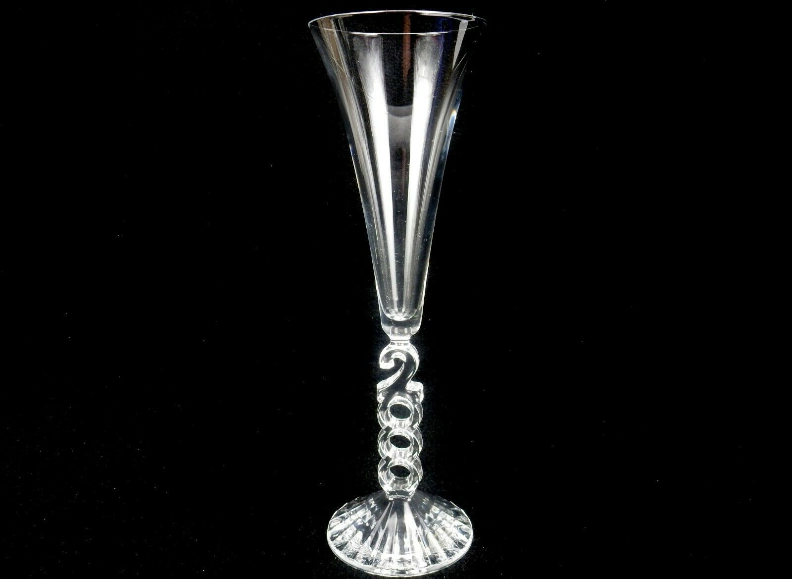 Set of 2 Cristal D'Arques Champagne Flutes, Y2K New Millenium, Year 2000 On Stem