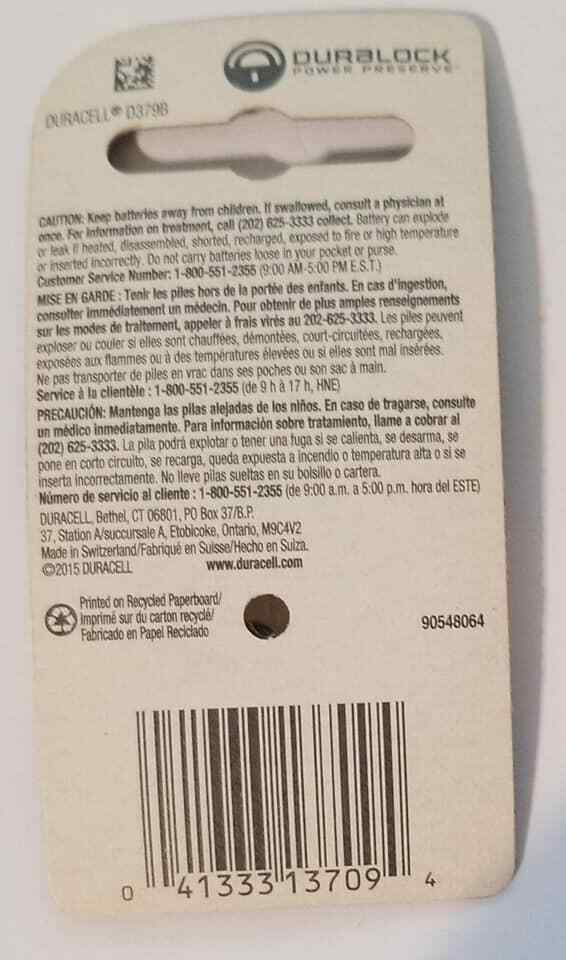 Duracell 379 Silver Oxide Button Battery long lasting battery 1 count