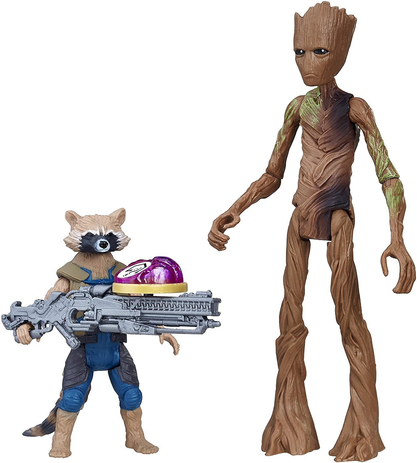 6-inch-scale Rocket Raccoon and Groot figures with movie-inspired design