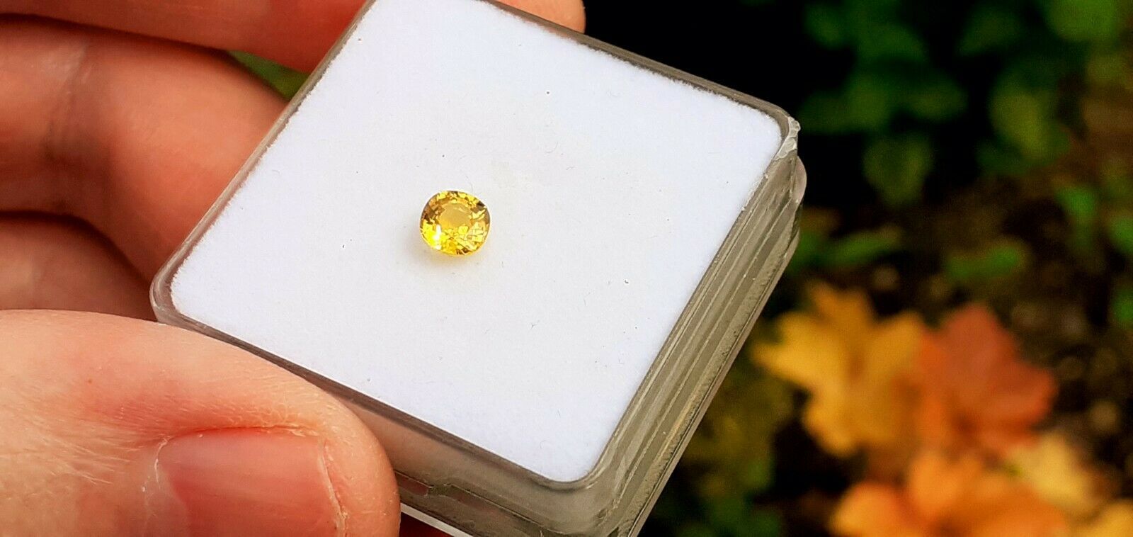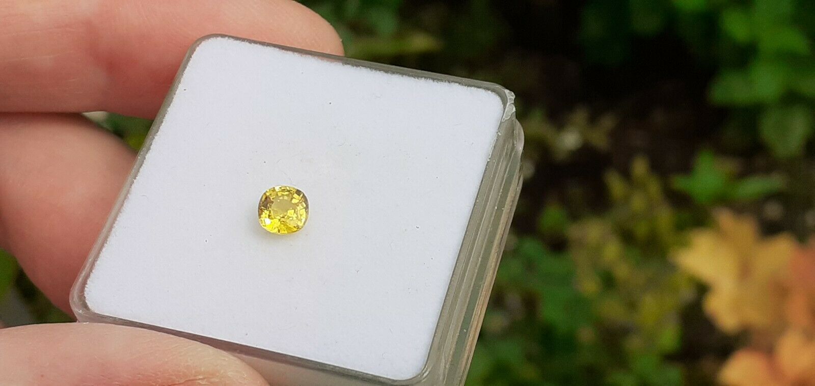 PETITE BUT POWERULL COLOUR.PRETTY BRIGHT YELLOW SAPPIRE IN CUSHION SHAPE 0.59CT 4.8X4.8X2.8MM .MESSAGE FOR MORE INFO