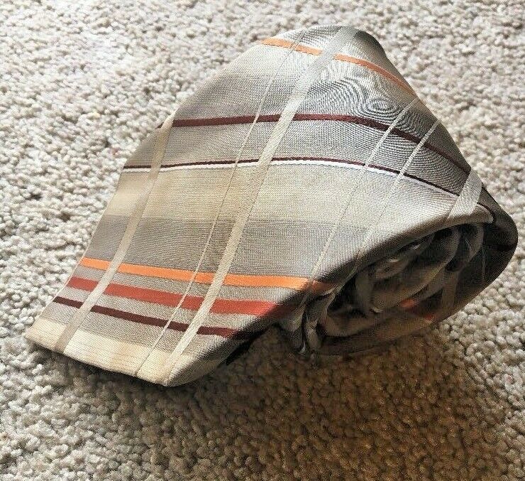 Van Heusen Men's Tie 100% Silk Beige Brown Plaid C13