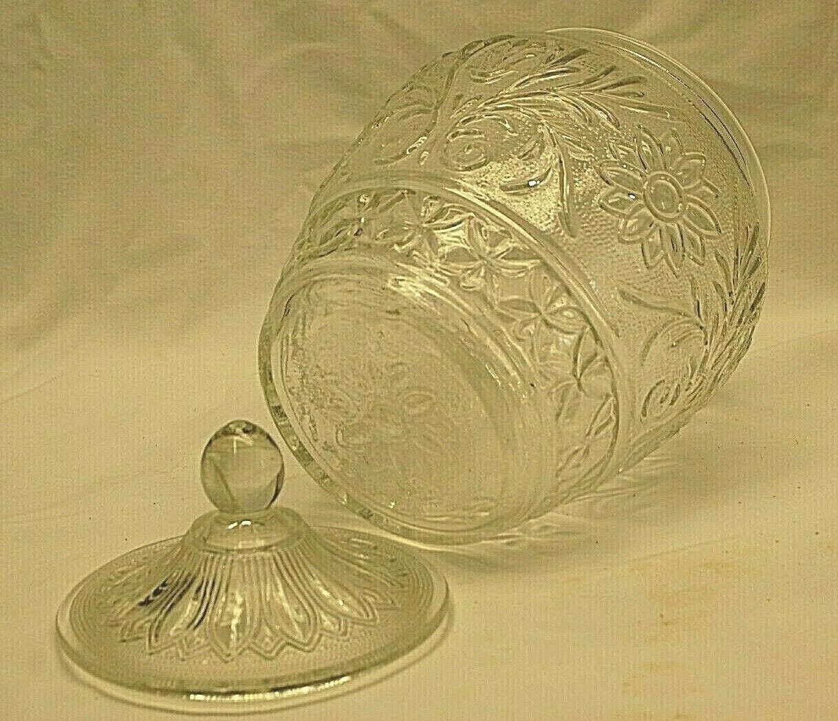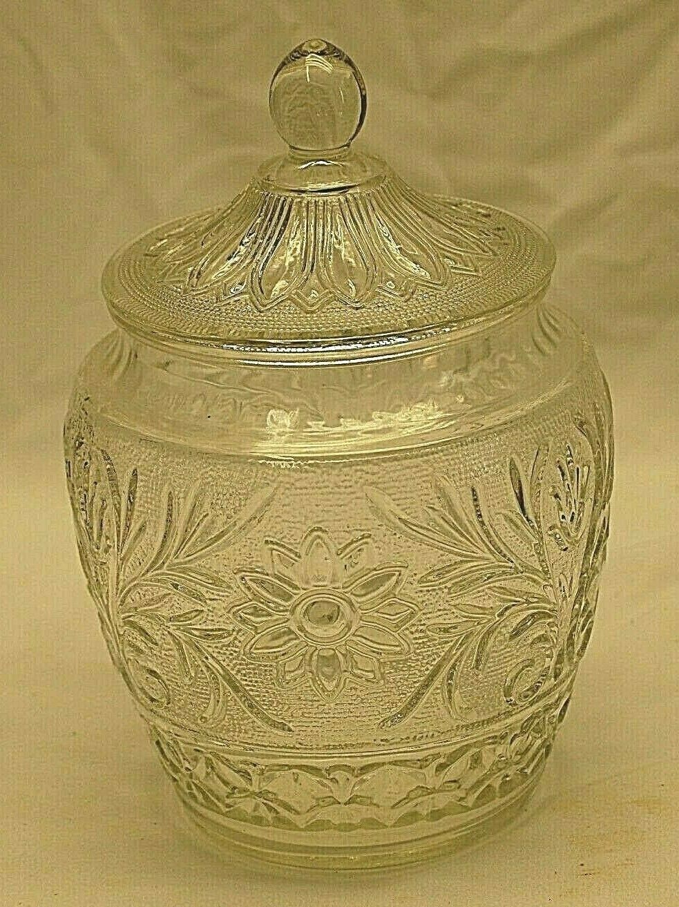 Sandwich Clear Glass Cookie Biscuit Jar & Lid Anchor Hocking Glassware Vintage