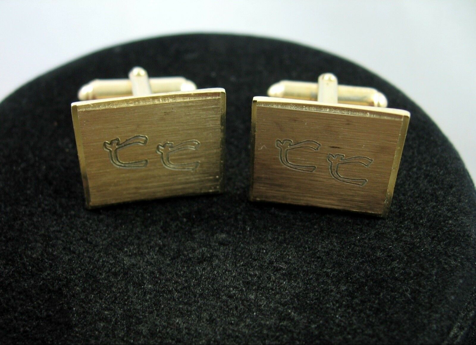 Horse SPURS ? CC type Pattern CUFFLINKS MEN'S Vintage Goldtone Cuff Links