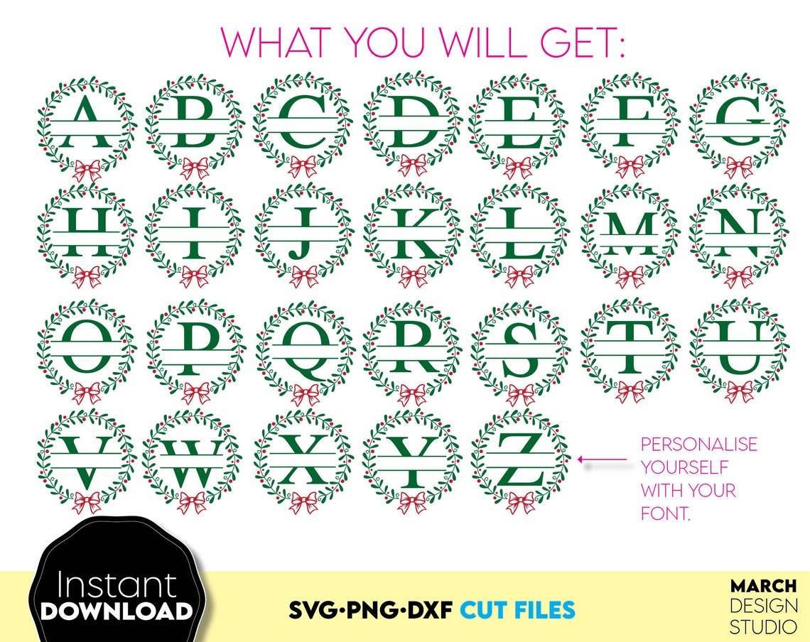 Split Monogram SVG, Dxf Christmas Letters SVG, Christmas Monogram SVG, svg Files