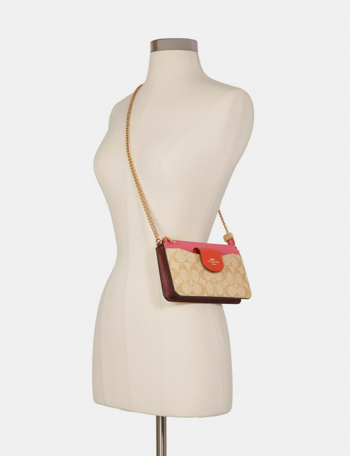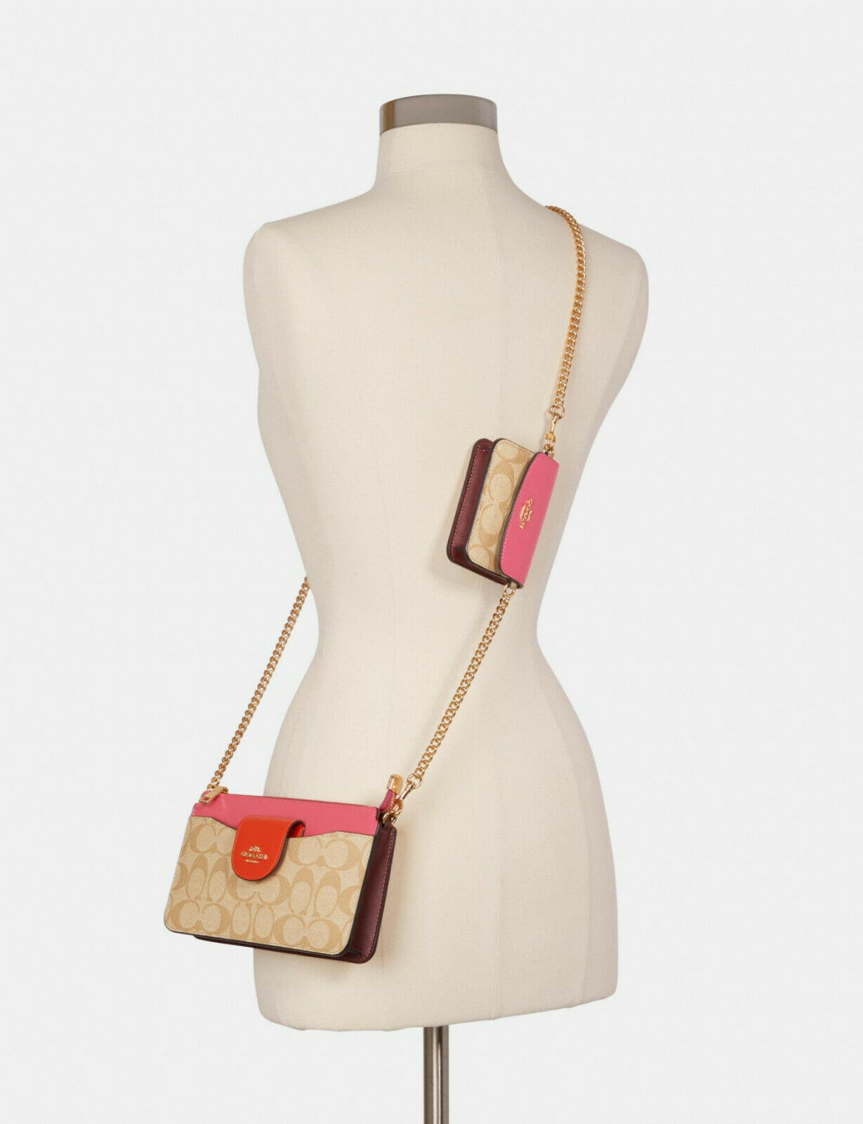 COACH Poppy Crossbody Colorblock Signature Canvas Mini Chain Wallet ~NWT~ C4215