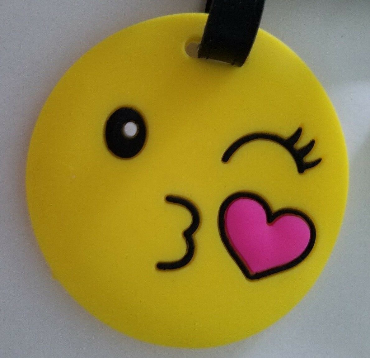 Emoto Emoji Pair Of Luggage Tags 2 Yellow Cool Wink Pink Heart Smiley ID NEW!!!