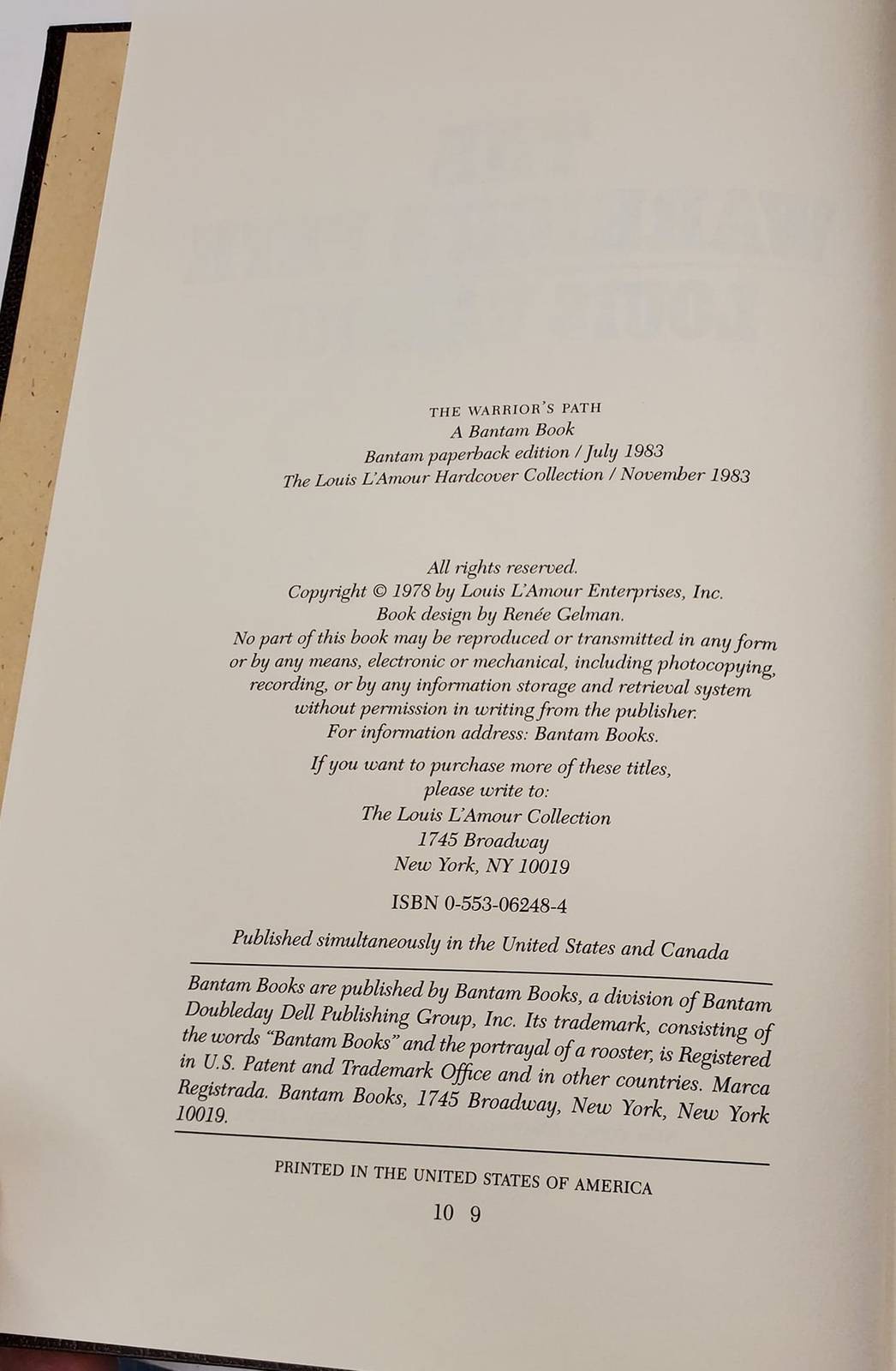 The Warrior’s Path by Louis L'Amour is from the Louis L'Amour Collection. This Collection features Mr L'Amour's books published in a rich leatherette binding with beautiful gold gilt printing. It was published by Bantam books in 1983.