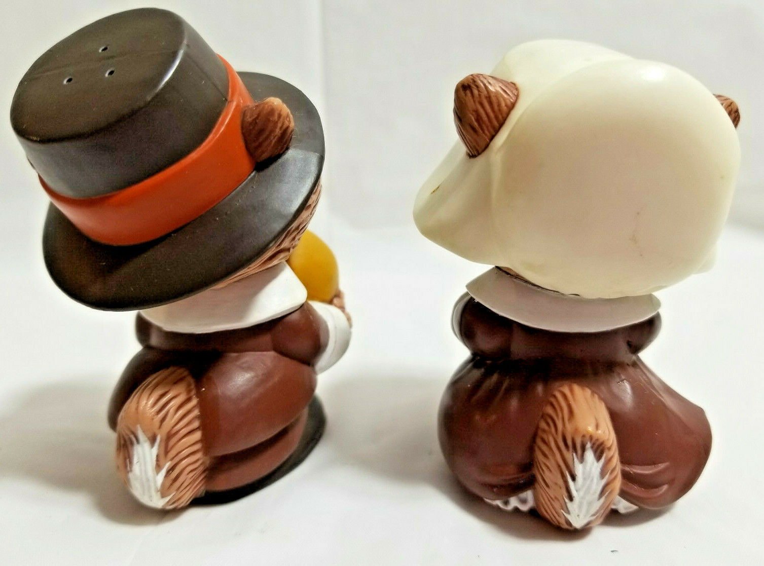 Thanksgiving Pilgrim Kitty Cats Salt & Pepper Shakers Hallmark Plastic Brown