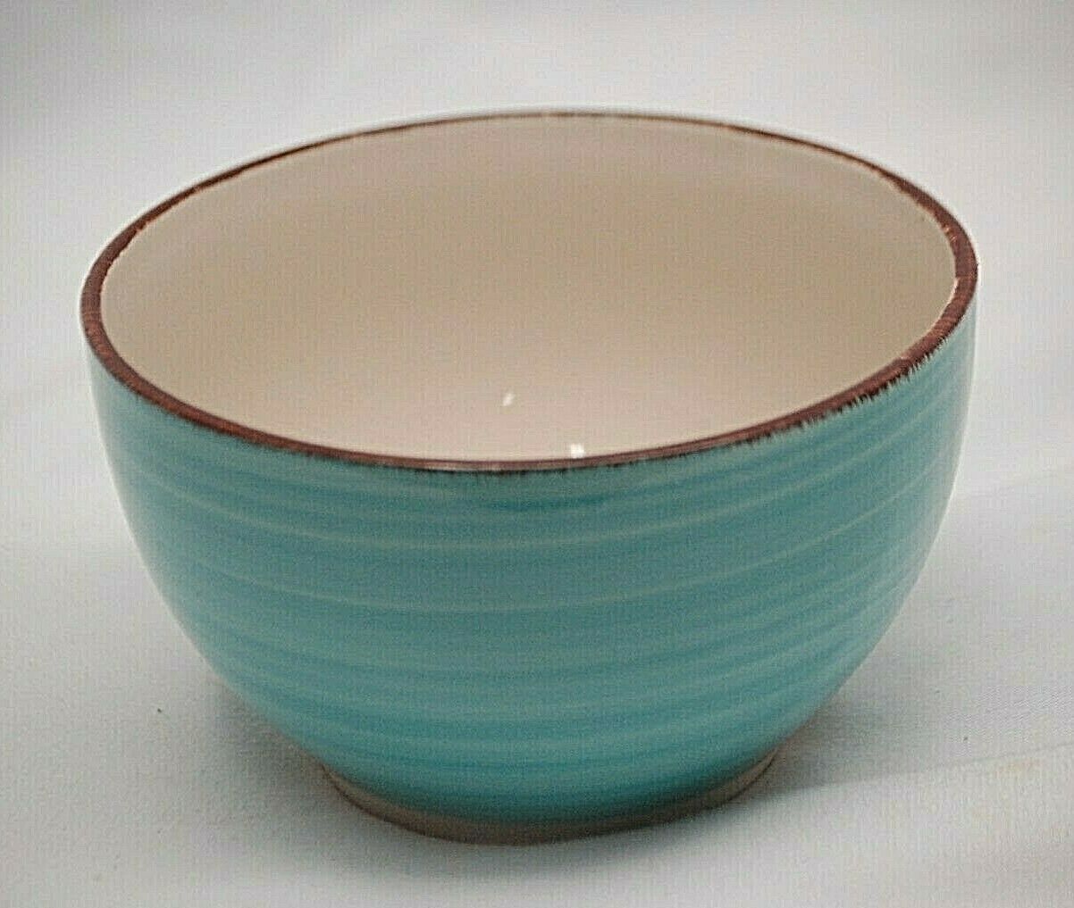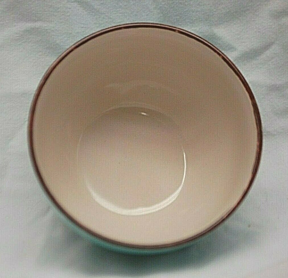 Royal Norfolk Soup Cereal Bowl Turquoise Swirl Coupe Brown Trim Dinnerware