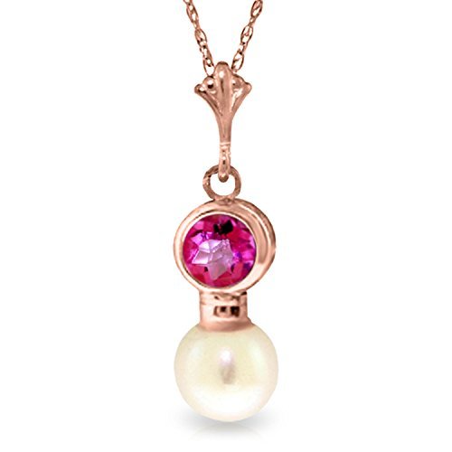 Galaxy Gold GG 14k Rose Gold 18" Pink Topaz Necklace with Freshwater-cultured Pe