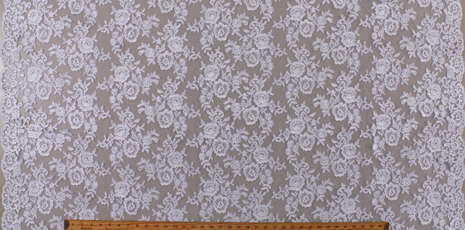 Alencon Reembroidered Bridal White Double Scalloped Edge Lace by Yard A102.03