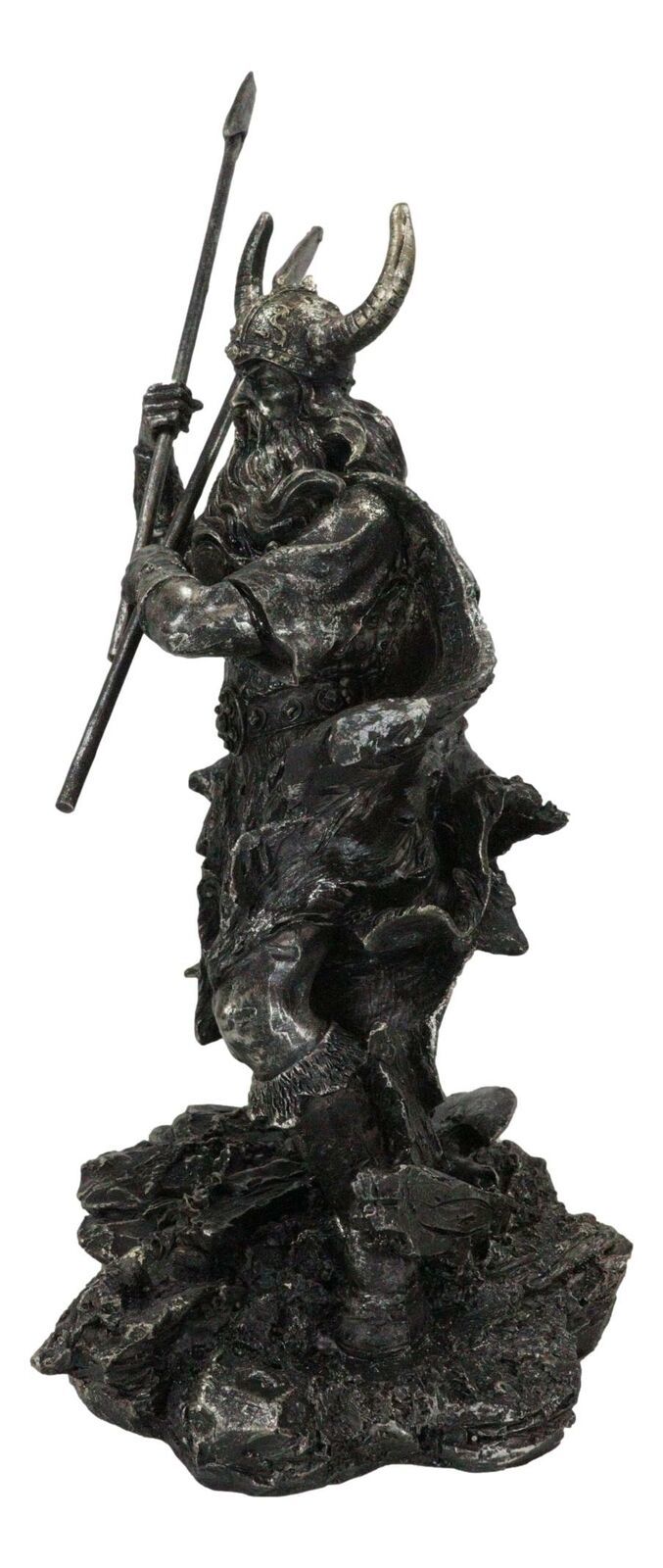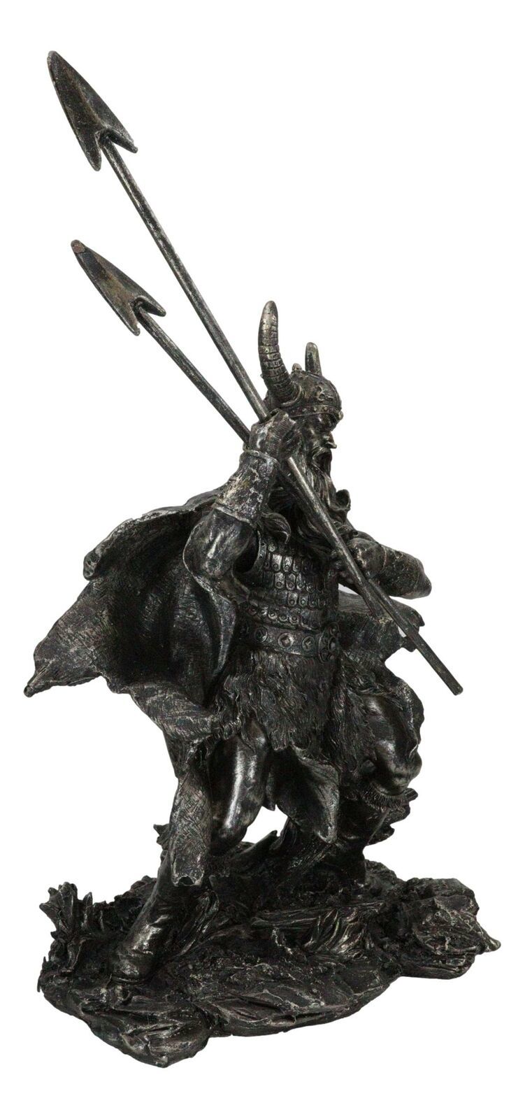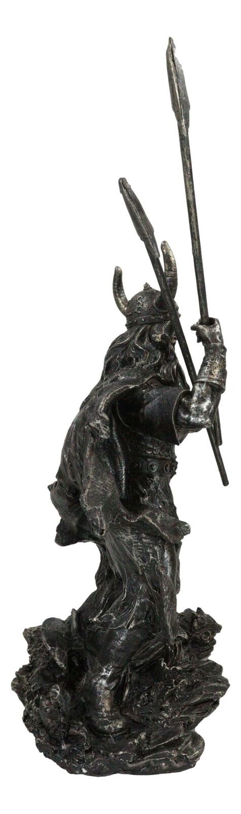 Viking Norse God Odin Alfather With Horned Helm Holding Javelin Spears Figurine