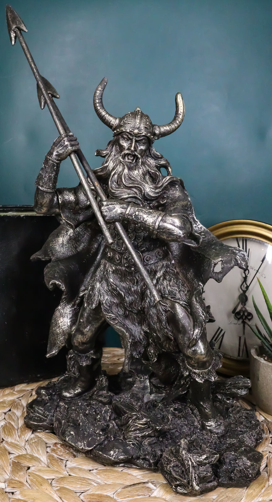 • This Viking warrior God Odin measures 13" Tall, 8.5" Wide and 5.5" Deep approximately. It weighs about 2.25 pounds.