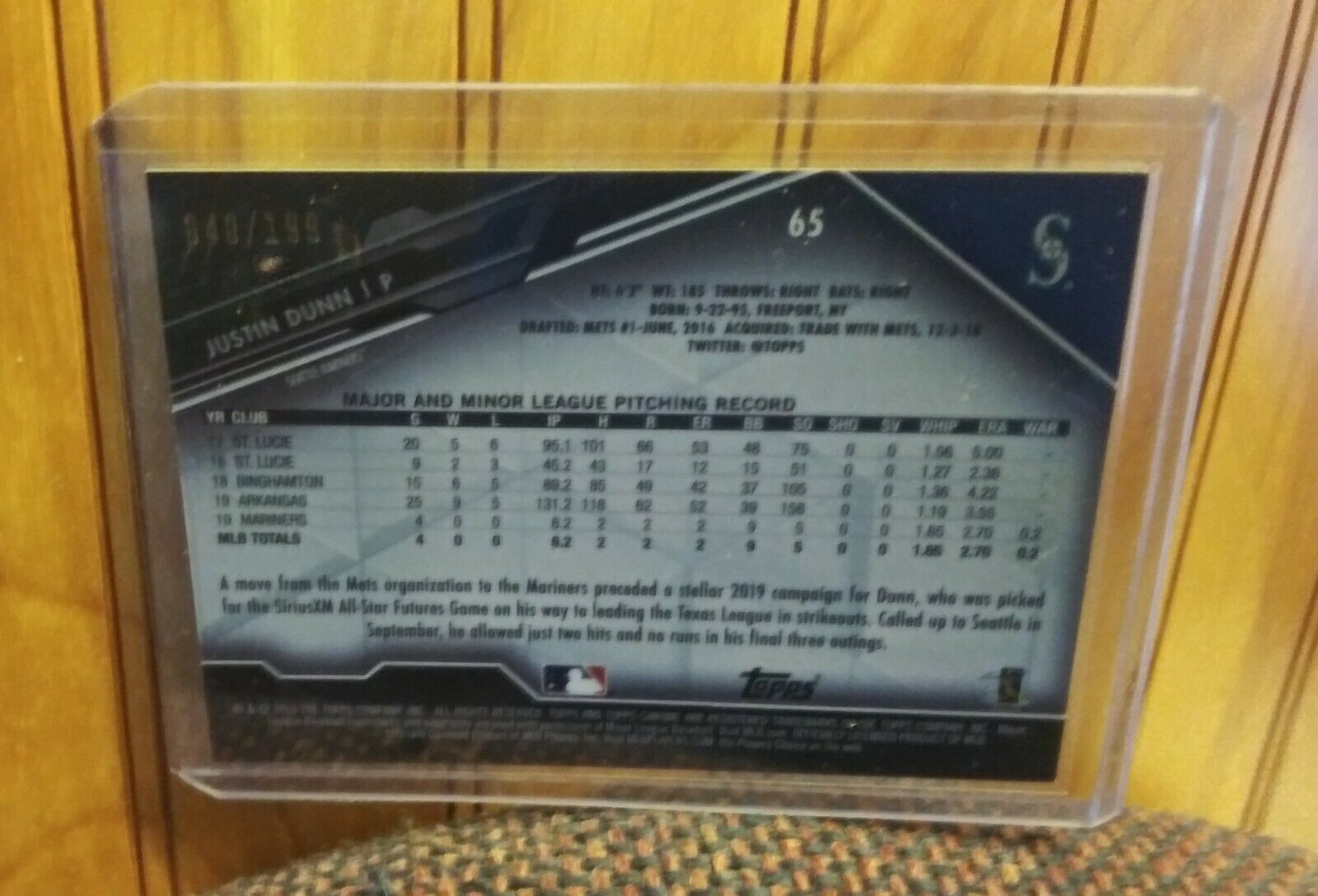 2020 TOPPS CHROME BLACK REFRACTOR JUSTIN DUNN ROOKIE #040/199 MARINERS #65