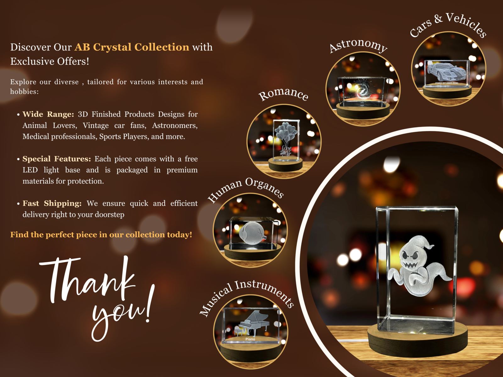 First, our designers create a unique and detailed 3D model. Then, our skilled technicians etch the 3D model into crystal using advanced laser technology.