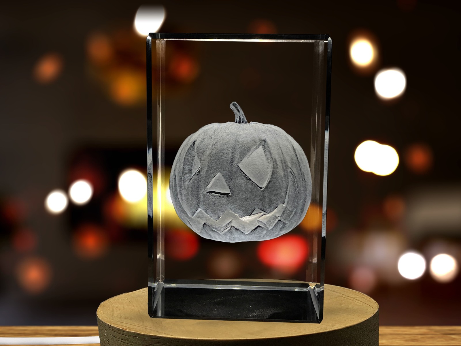 LED Base included | Jack-o-Lantern Symbol 3D Engraved Crystal Decor
