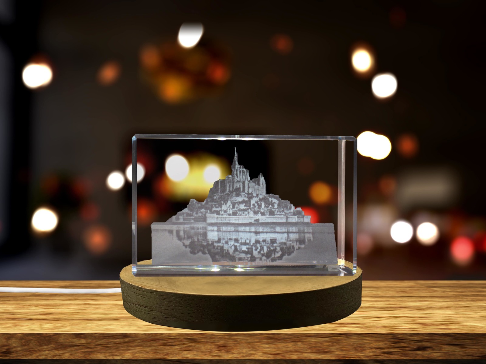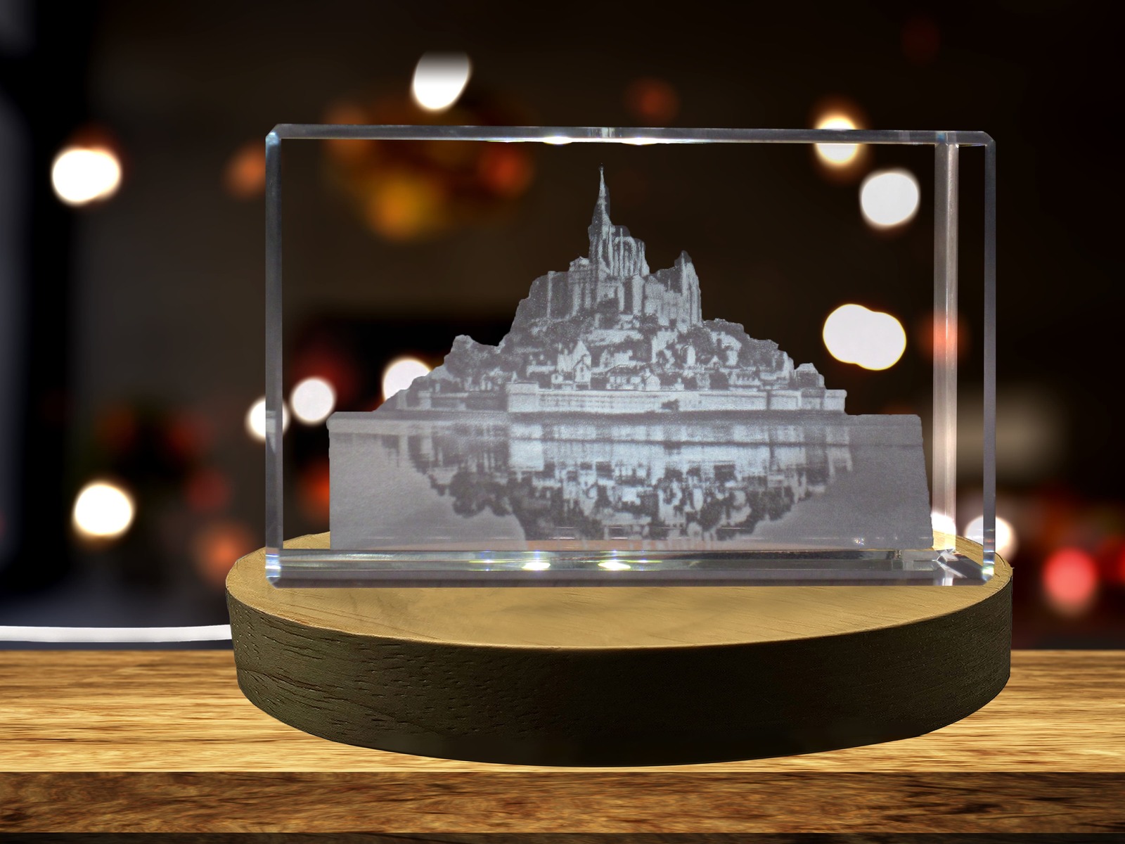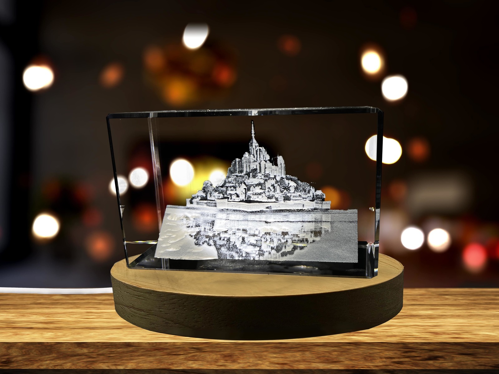 LED Base included | Le Mont-Saint-Michel 3D Engraved Crystal Keepsake Souvenir