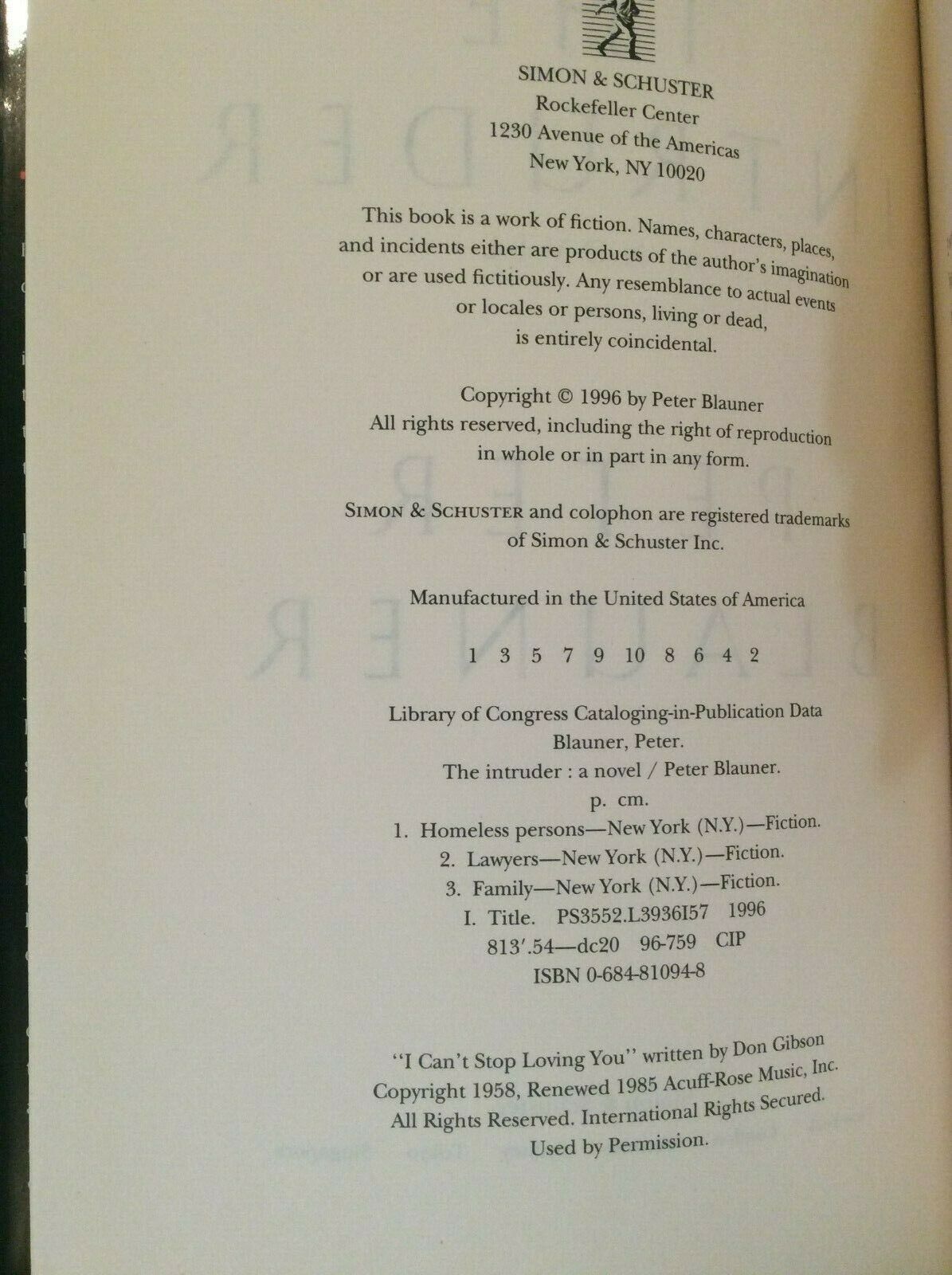 THE INTRUDER by PETER BLAUNER - HARDCOVER - FIRST EDITION / FIRST PRINTING