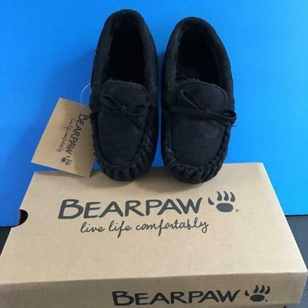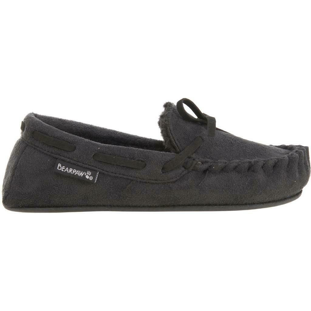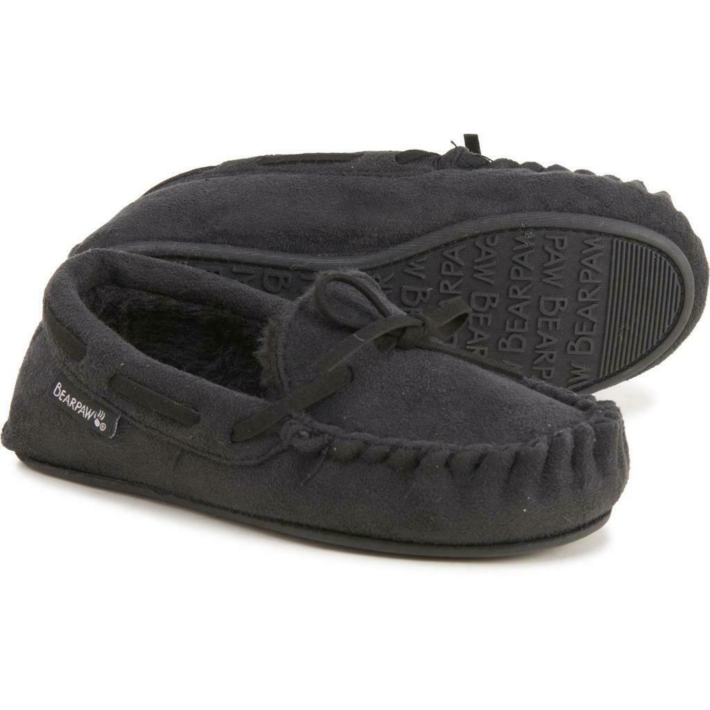 Youth Boys BEARPAW Black Faux Fur Lined Moccasins Slip-on Slippers M 13-1 XL 4-5