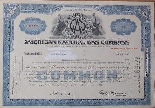 American Natural Gas Co. - 1961 Stock Certificate