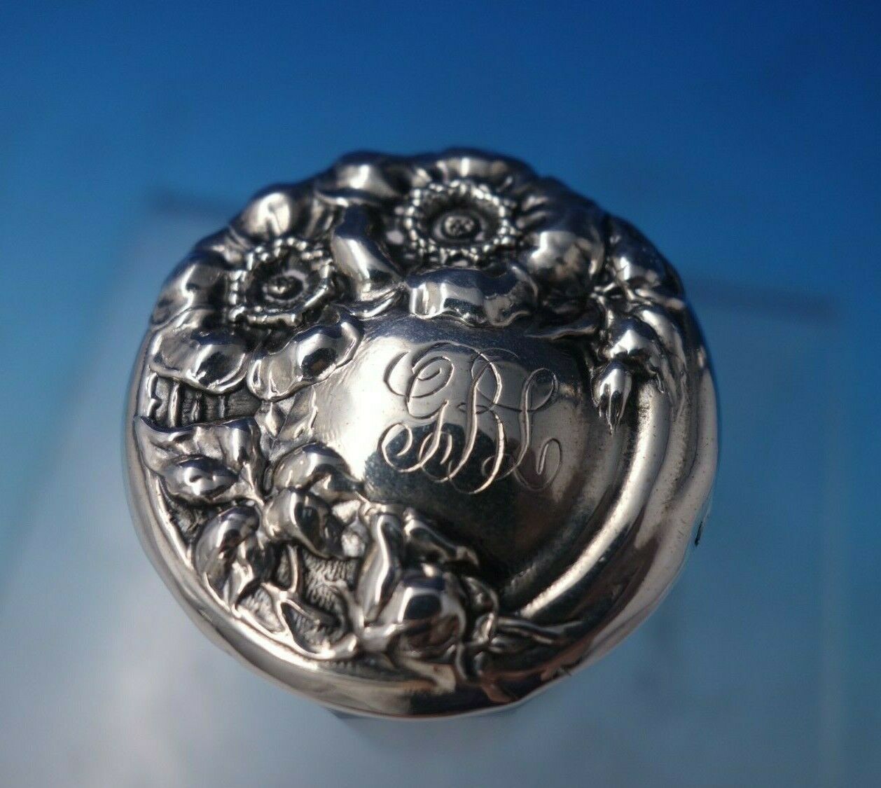 Sterling Silver Dresser Jar with Daisies on Lid c.1910 3 3/4" x 1 1/4" (#5546)