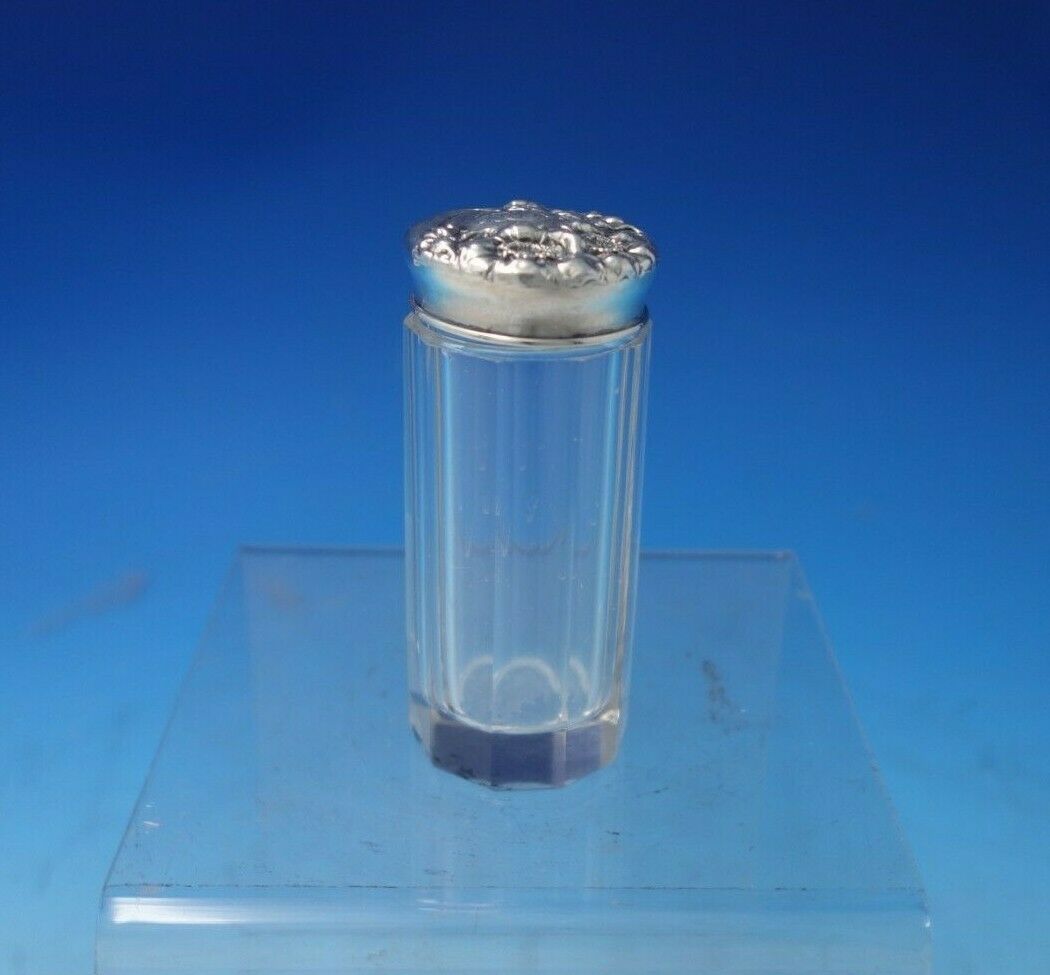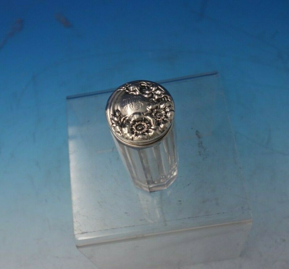 Wonderful sterling silver dresser jar with daisy motif on lid, circa 1910 (unmarked, maker unknown). This piece measures 3 3/4" tall x 1 1/4". It is monogrammed (see photos), and is in good vintage condition. Superb!