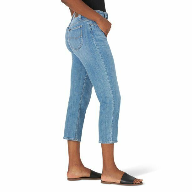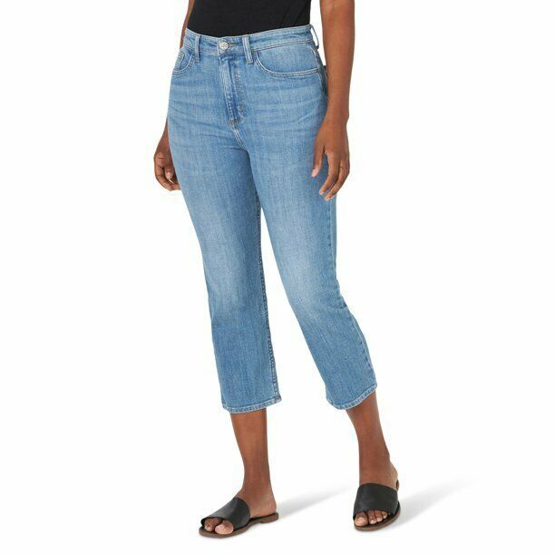 Lee Women's Straight Leg Cropped Jean Straight Crop High Rise Relaxed Fit Blue