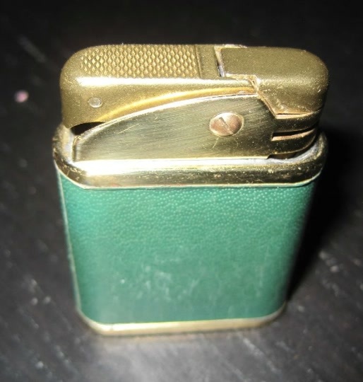 Vintage AL Green Faux Leather Wrap GOLD tone Gas Butane Lighter. SOLD AS IS