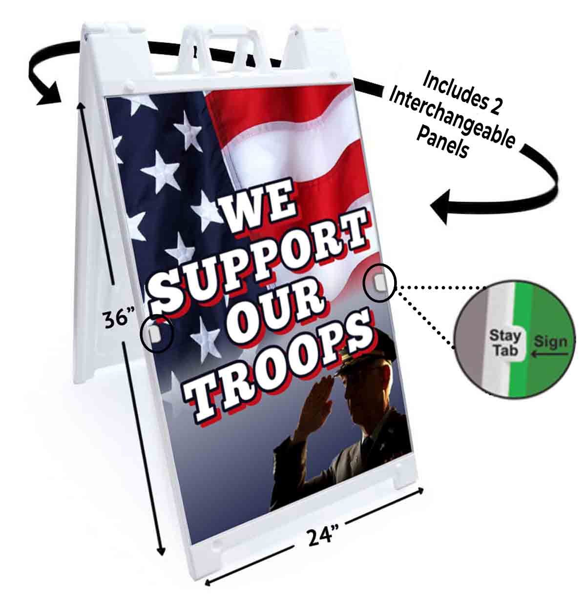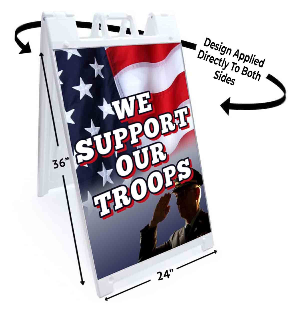 WE SUPPORT TROOPS Signicade 24x36 Aframe Sidewalk Decal Sign Banner MILITARY