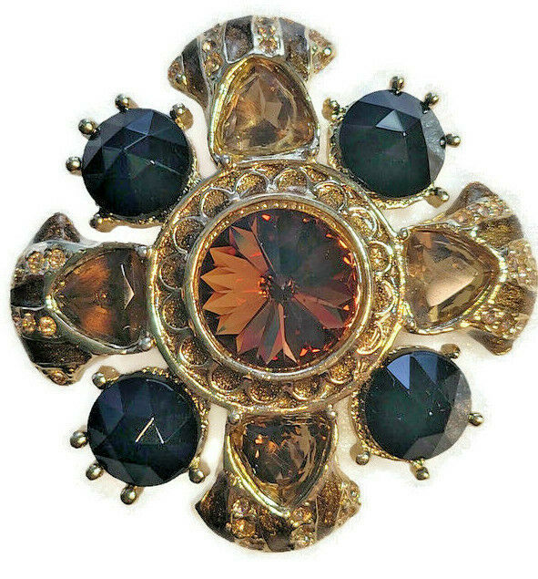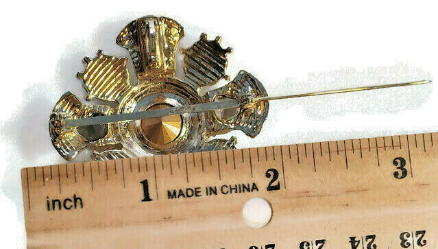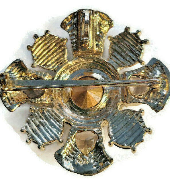 Browns Fashion Brooch Pin Gold-Tone Embossed Crystal Rhinestones Winter