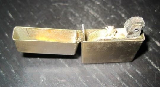 NOVELTY MINI Square Shaped Flip top Brass Tone Petrol Lighter Made in JAPAN