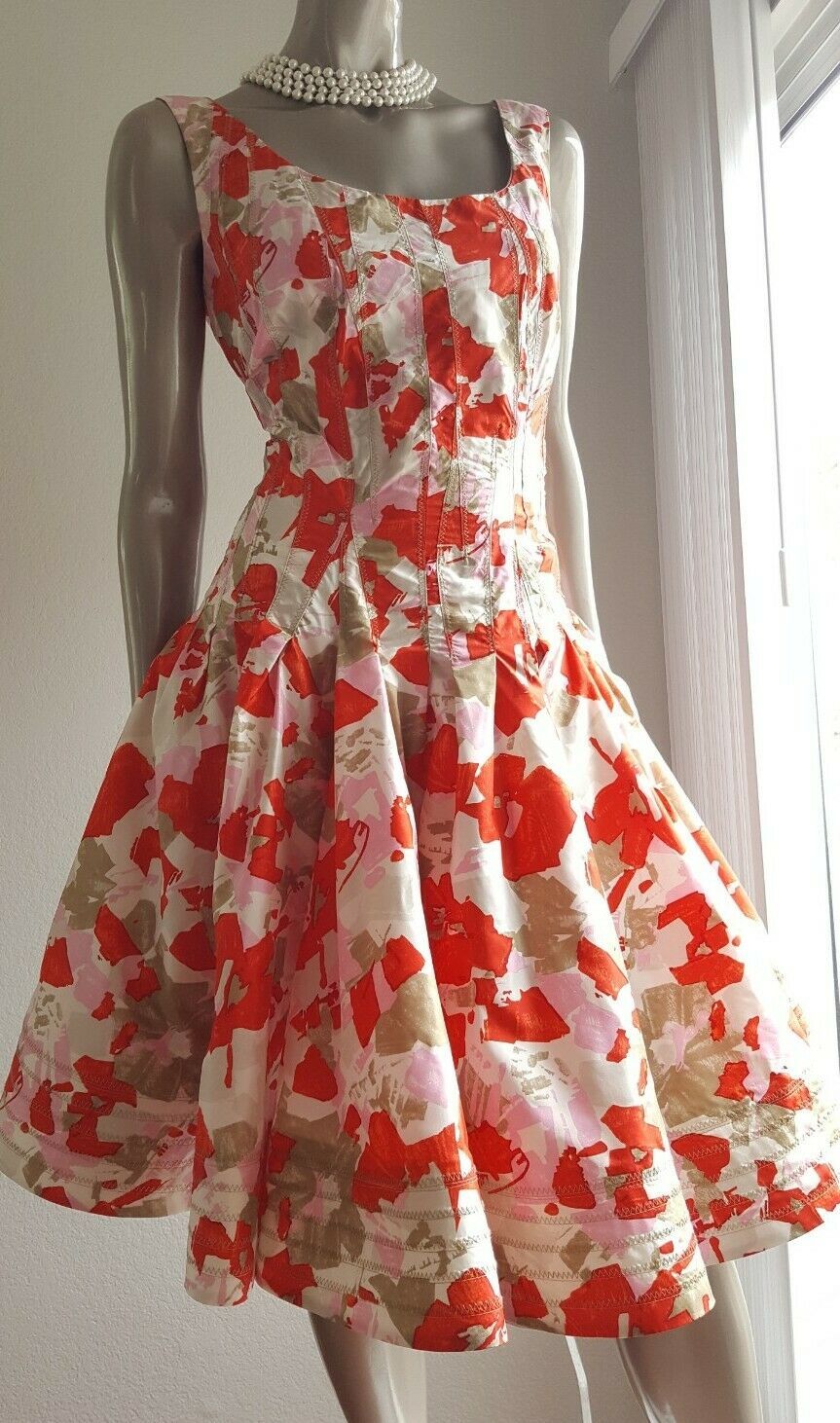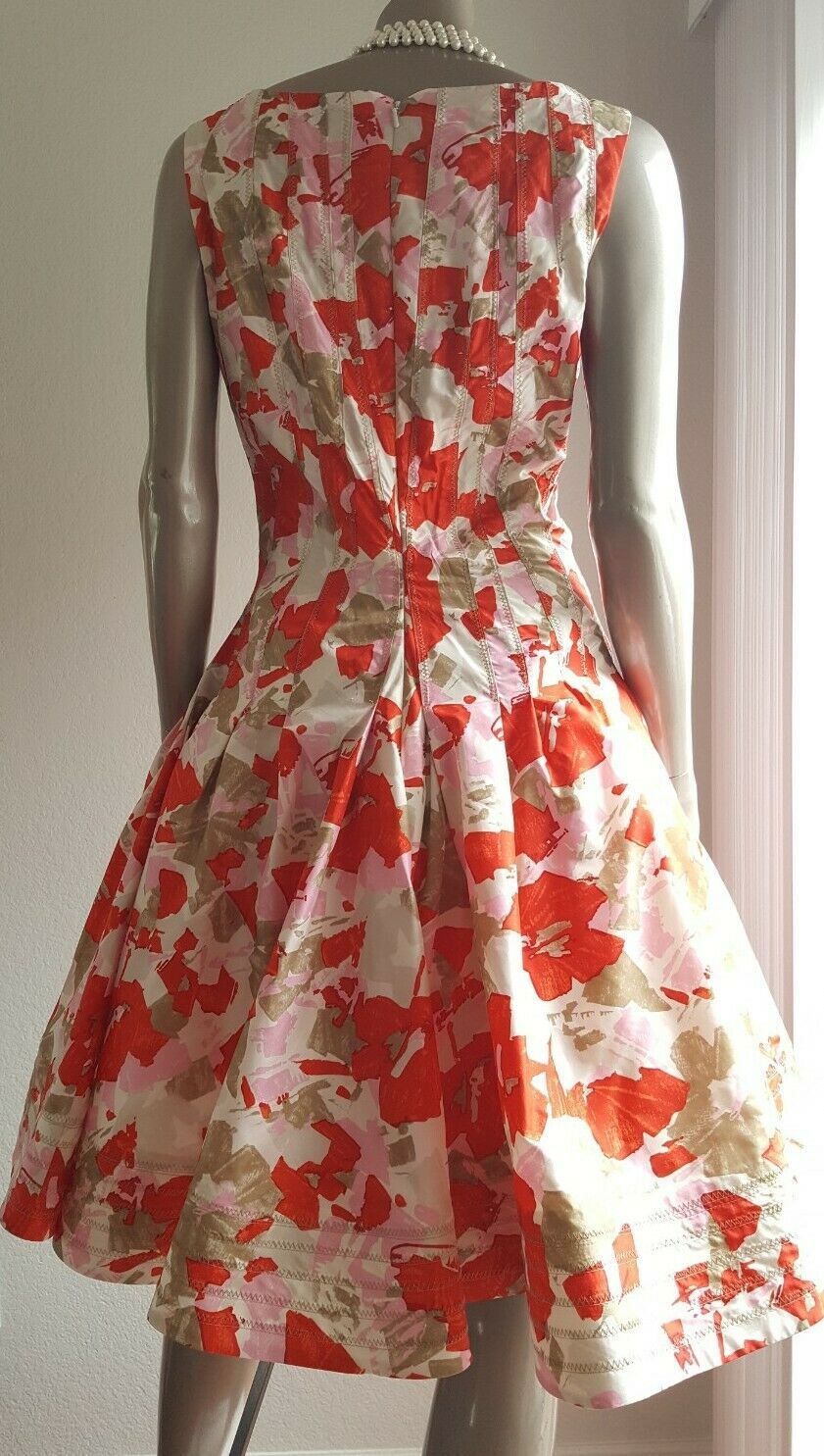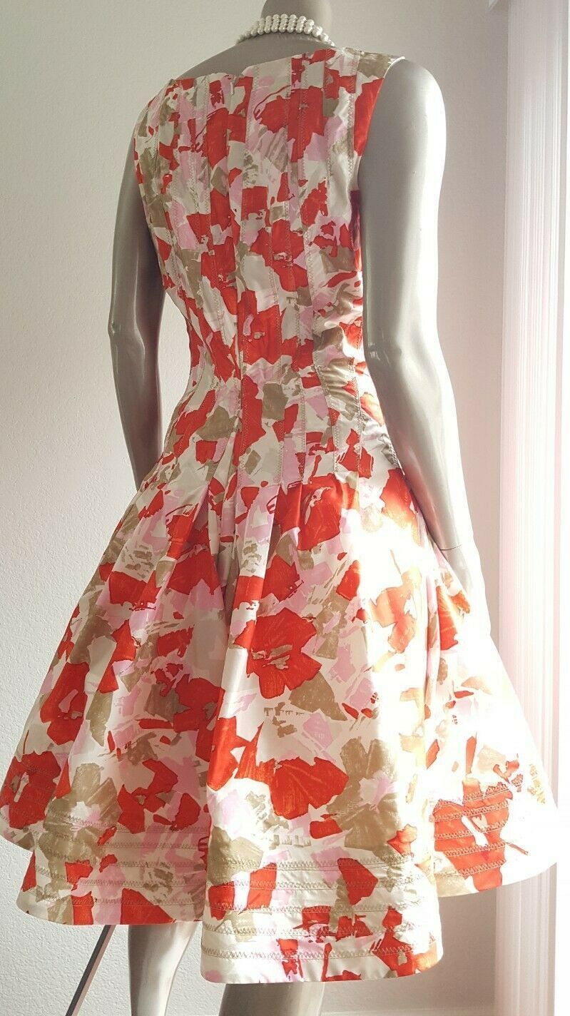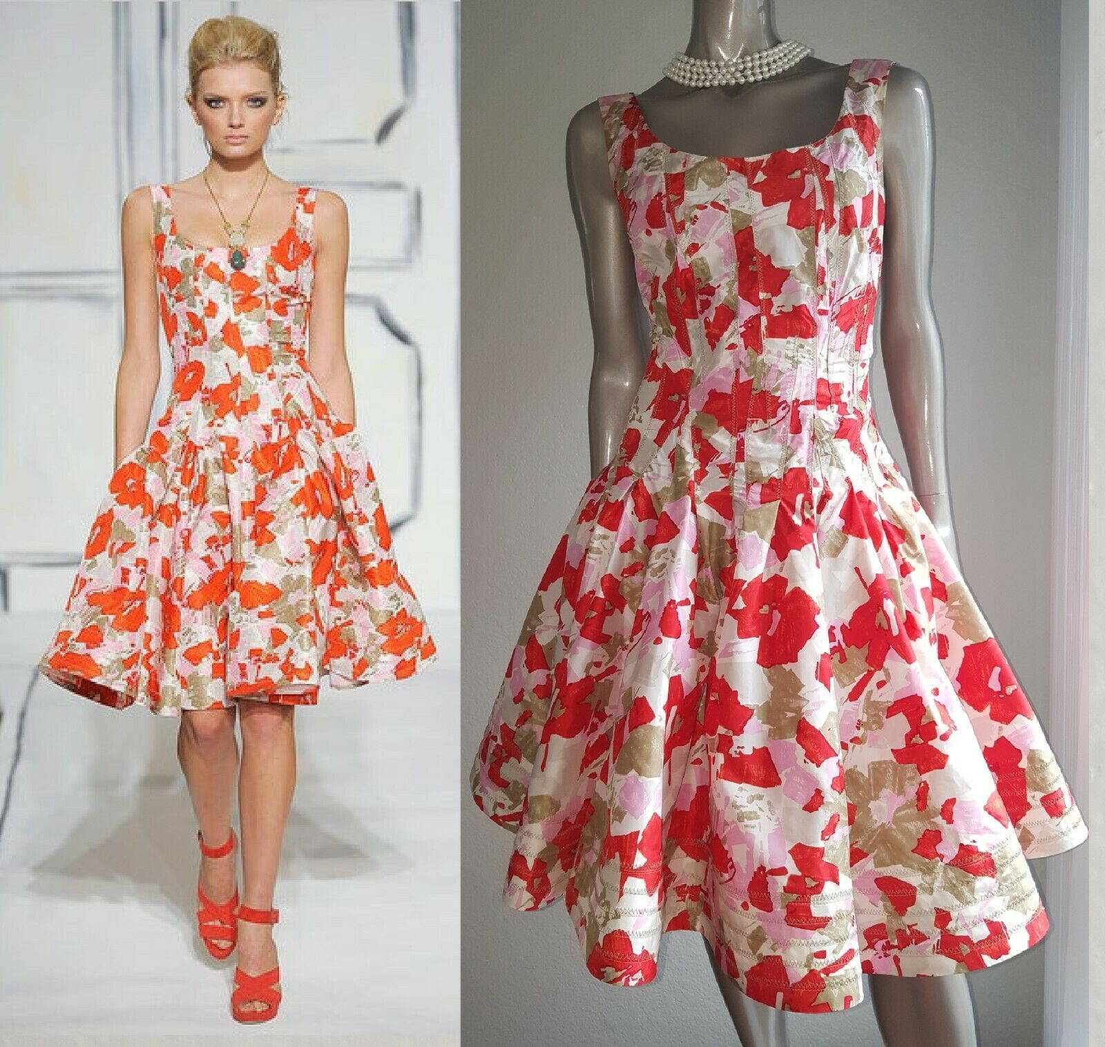$5,000 OSCAR DE LA RENTA STUNNING WHT RED PINK FLORAL SILK RUNWAY DRESS US 10