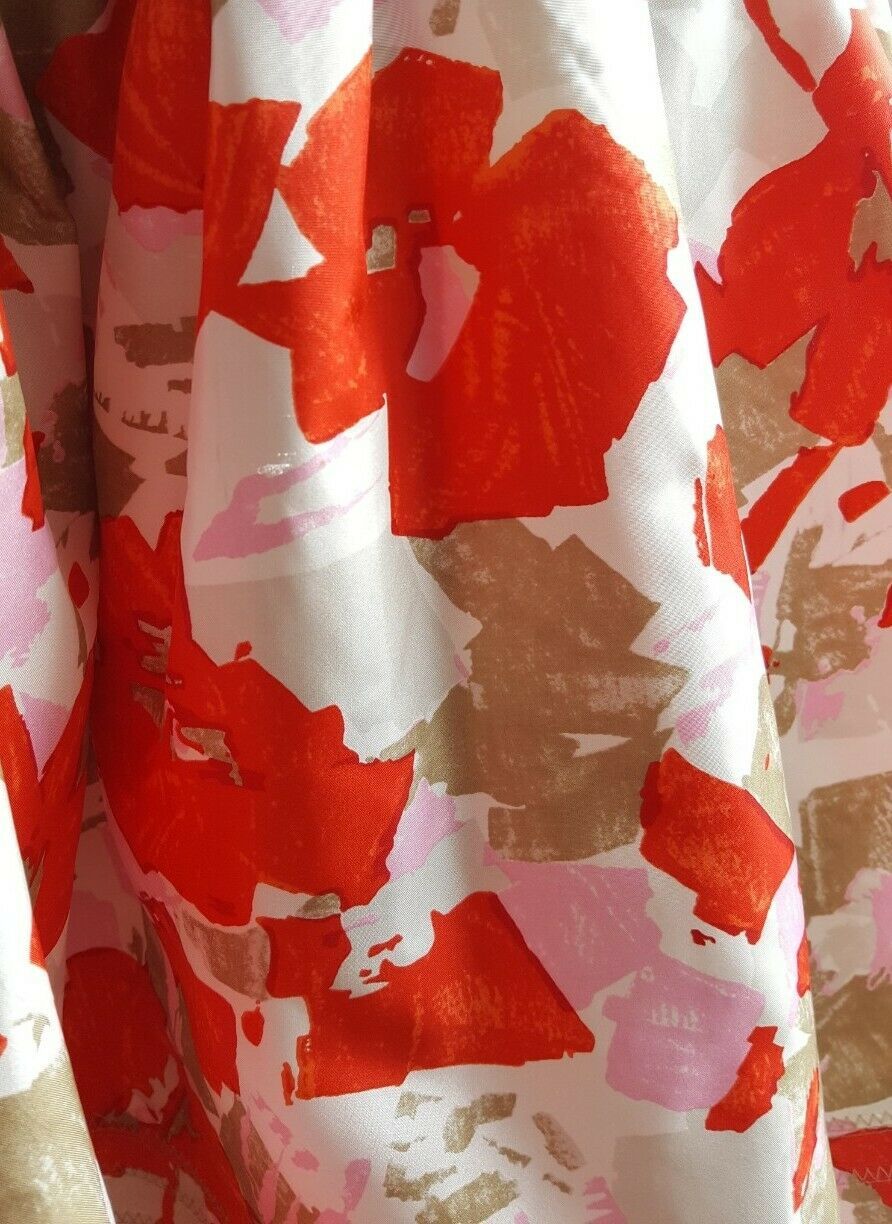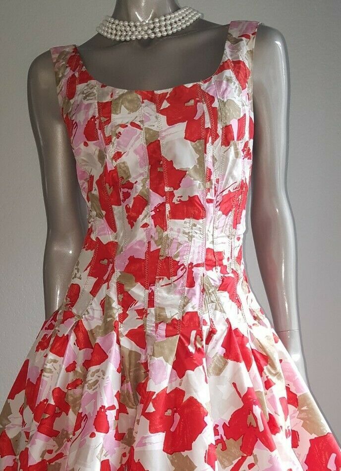 - JUST STUNNING - EXCLUSIVE WHITE RED PINK FLORAL SILK DRESS. Beautiful design and shape for perfect figure. The stunning floral silk fabric is like fine poetry.