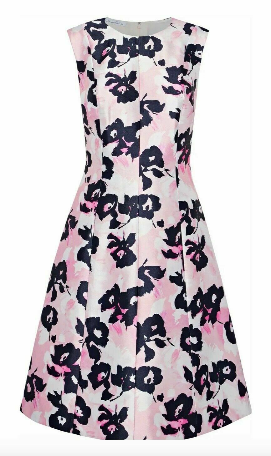 Oscar de la Renta stunning inspired blossom print silk dress, with 100% pure dilk linned.