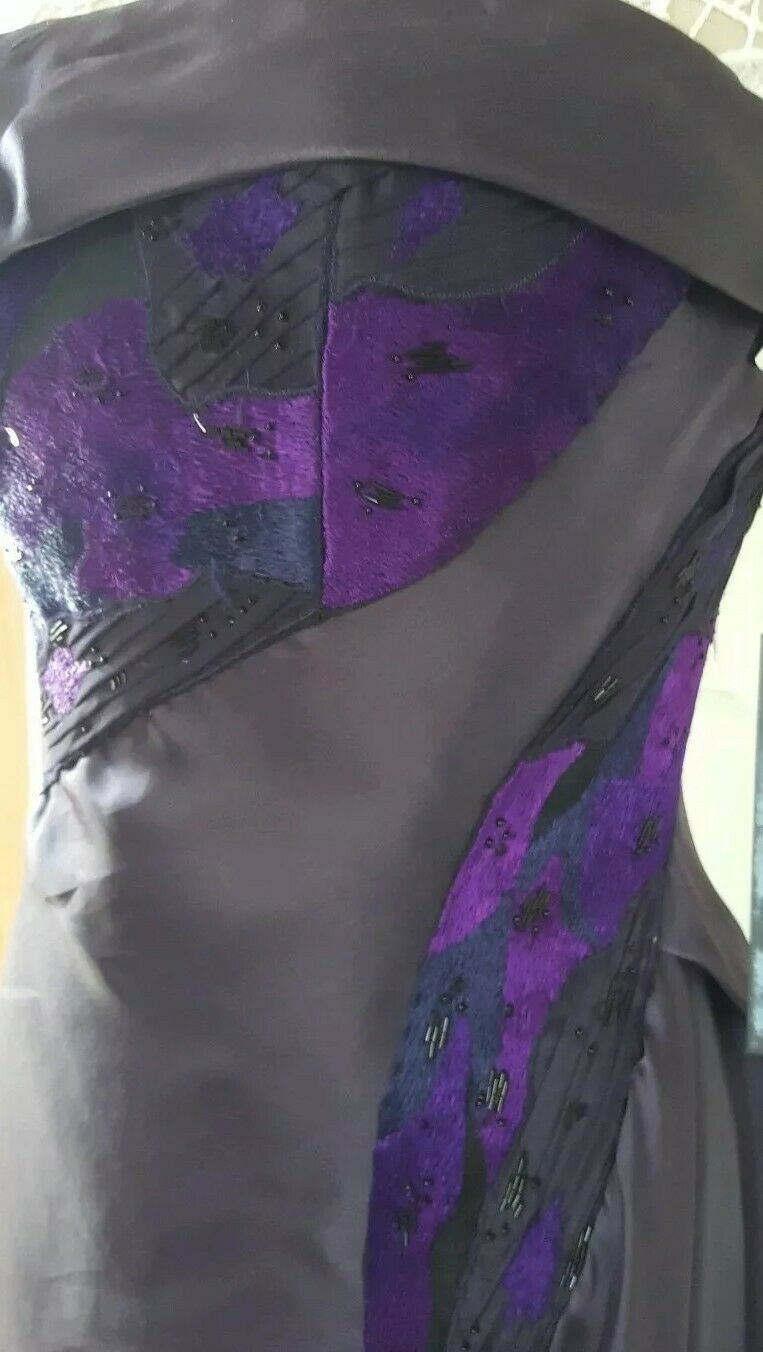 $7990 RUBIN SINGER STUNNING DAHLIA PURPLE.EMBRODERY BEAD SILK EVENING DRESS GOWN US 0